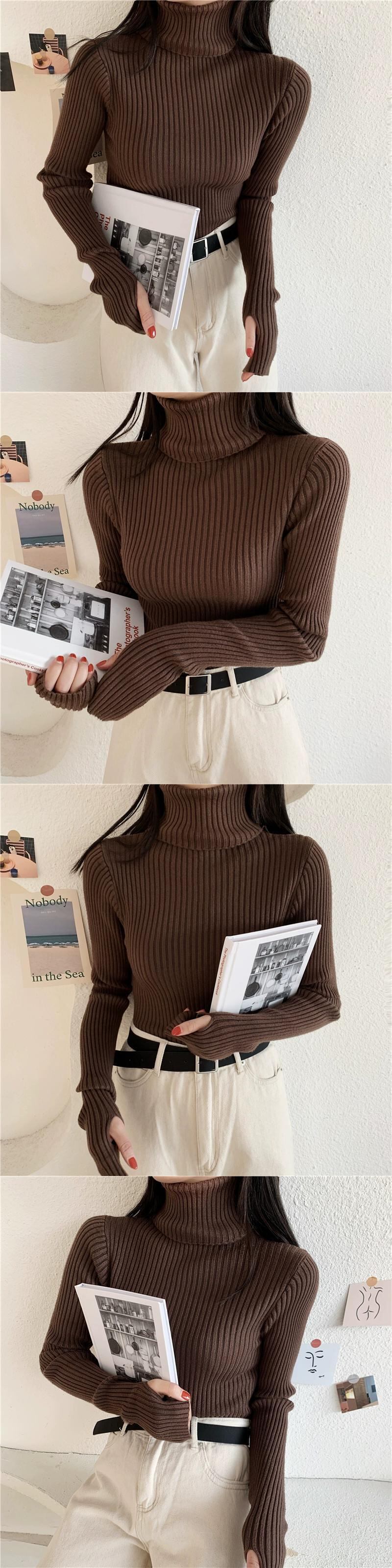 アプリコットタートルネックボトリングシャツ女性の秋のファッションセーター 2023 新しいスタイルのセータースリムフィット長袖トップ ロング オータム 秋物 8571641362765316