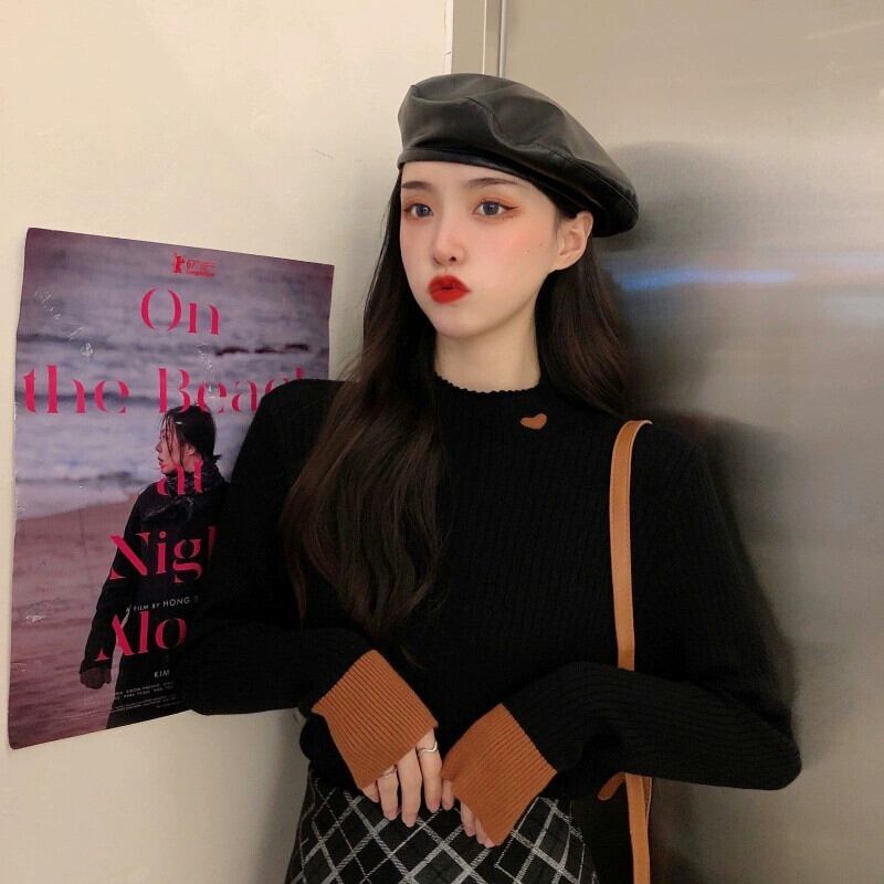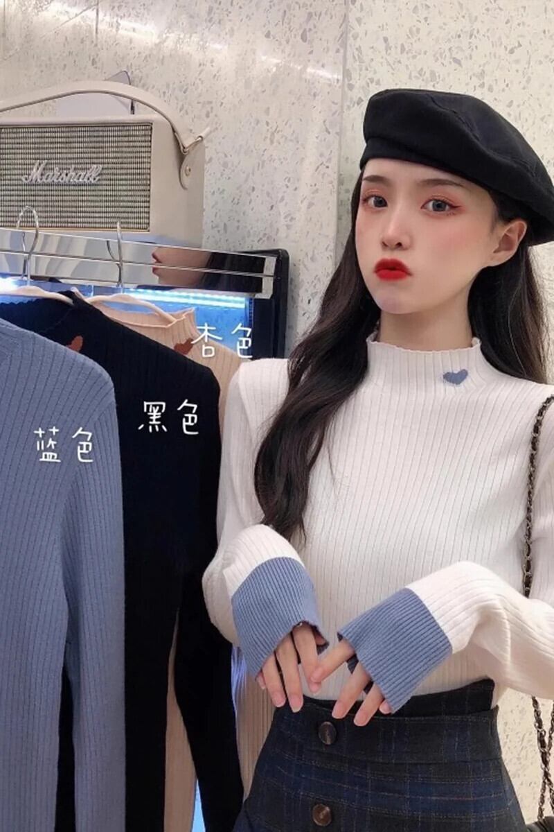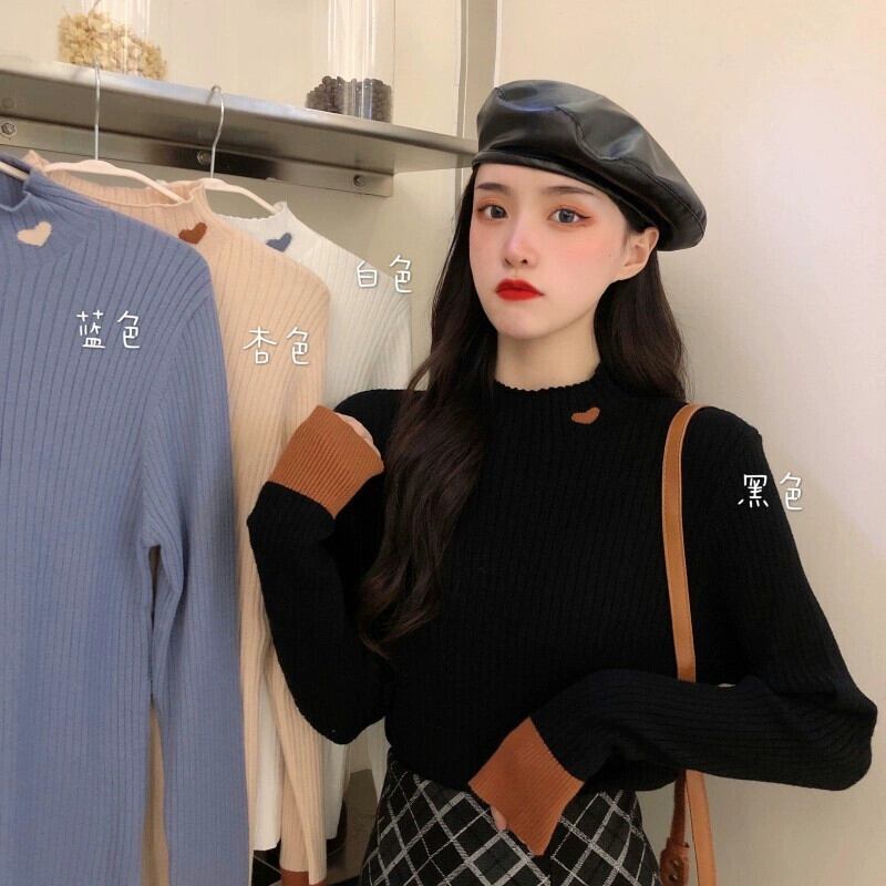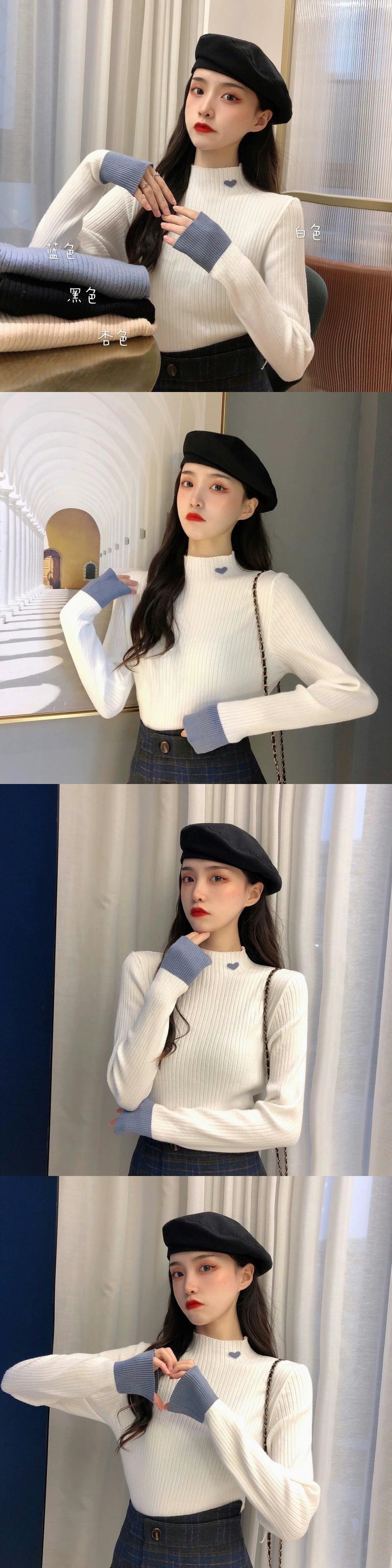 ハーフタートルネックニットボトムシャツレディース、新しい秋冬スタイルのインナーカラーブロックセーター、ハイエンドでとても素敵な長袖トップ ロング オータム 秋物 ウィンター 冬物 8571665155198007
