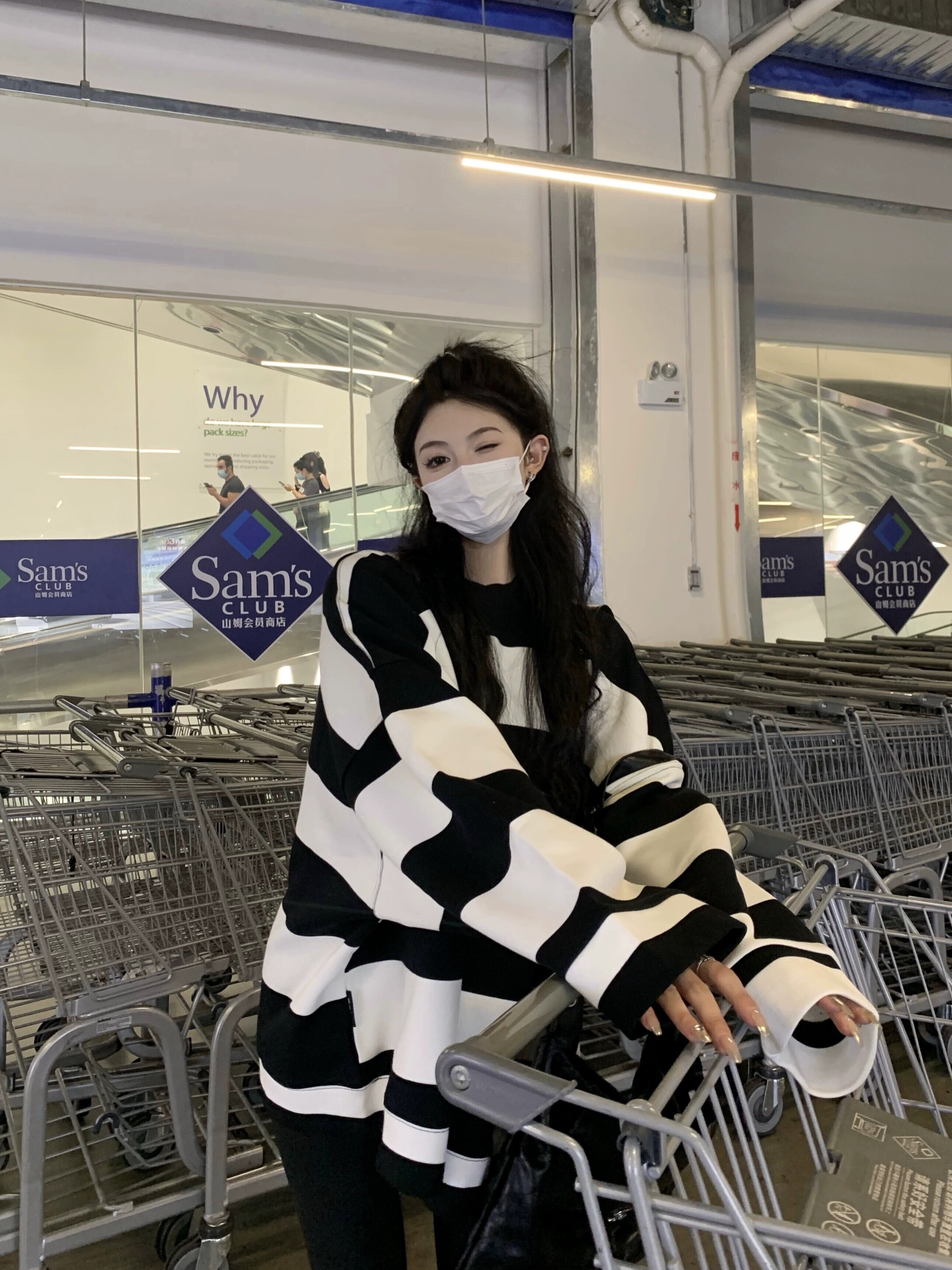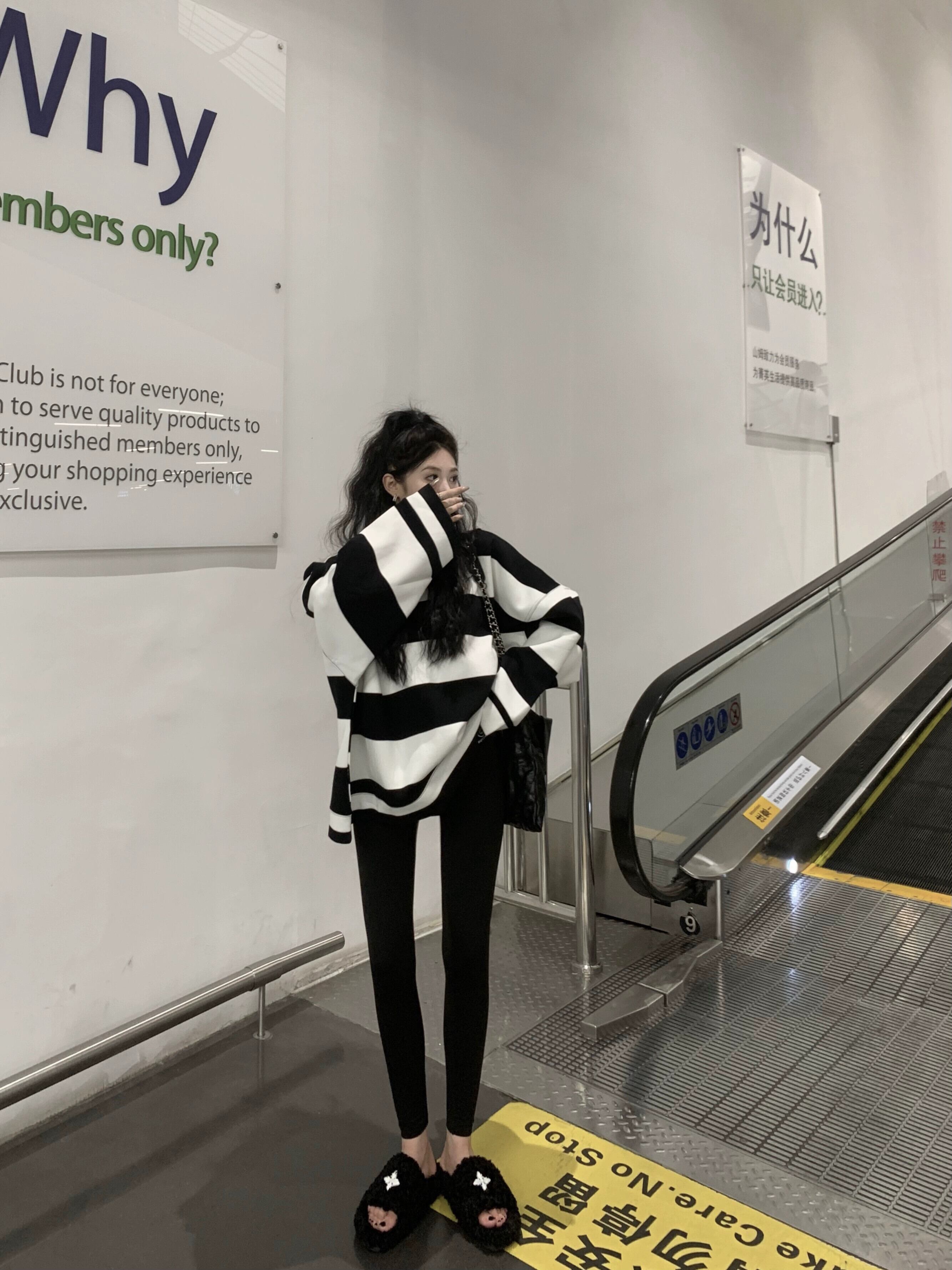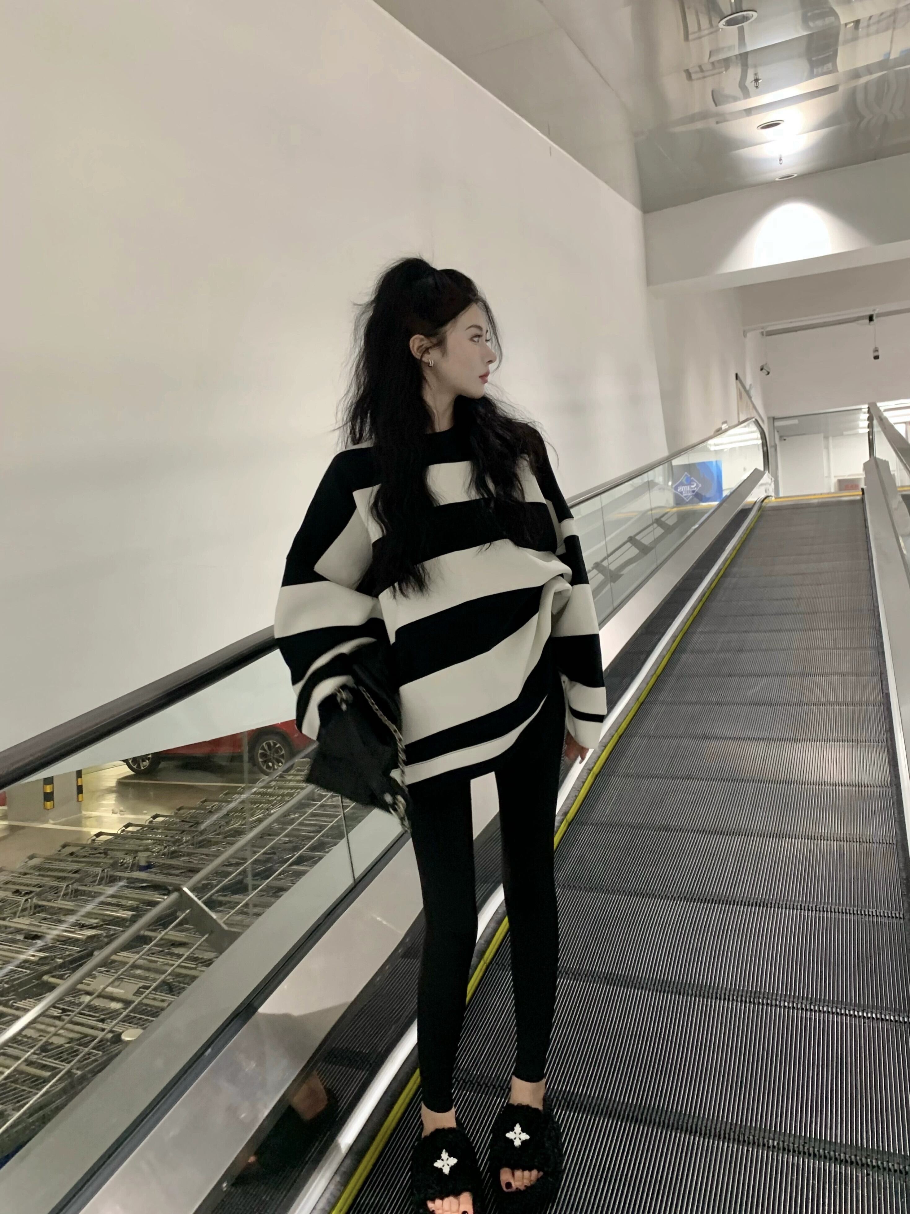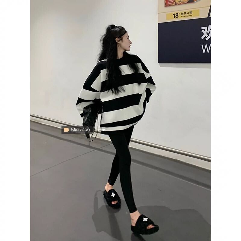 お尻をカバーするミッドレングスのストライプのスウェットシャツの女性、2023年秋の新しいスタイルの緩い怠惰なスタイルのサメパンツとトップの服 オータム 秋物 8571691972341116