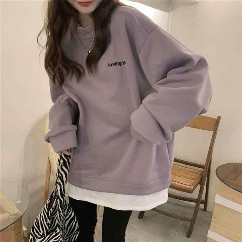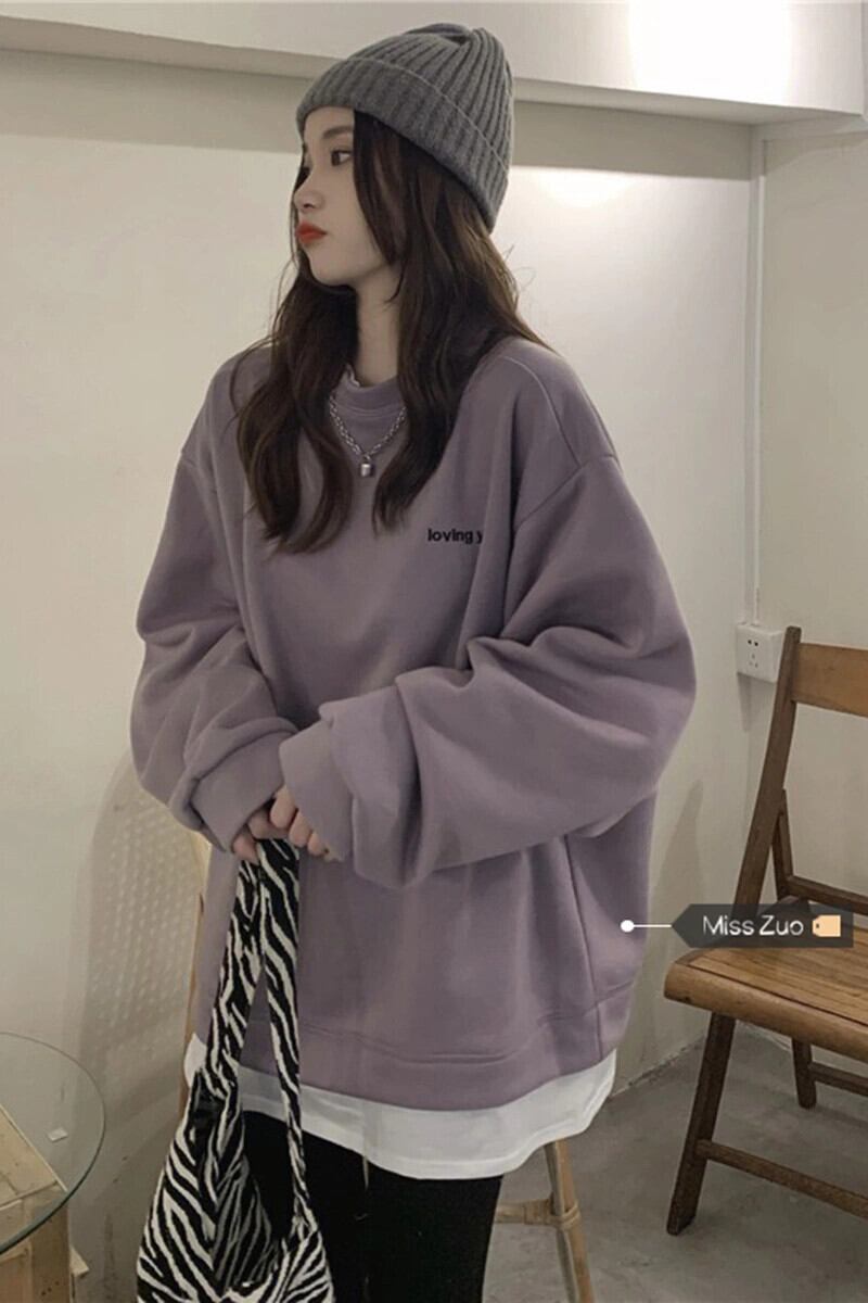 フリースフェイクツーピーススウェットシャツ女性のデザインニッチ2023秋の新しいスタイルの小さなアート生乳トップ オータム 秋物 8571633679237456