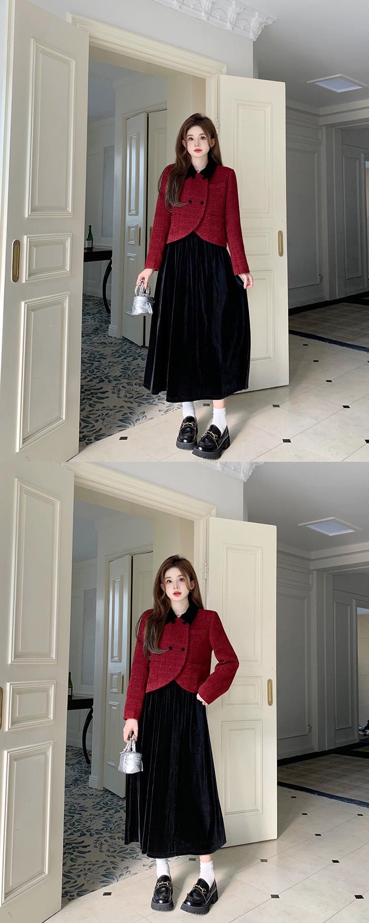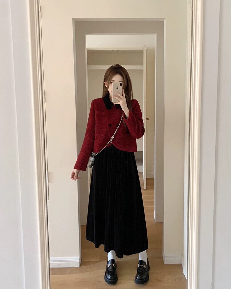 色:赤いジャケット,カーキ色のコート,黒スカート,ブロガー募集オーダー