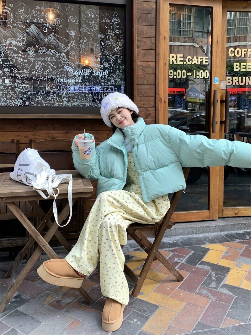 グリーンコットンコートの女性の冬肥厚パンコート2023新しいスタイルの小さな甘いショートコットンコート 大人ガーリー スウィート キュート カジュアル ウィンター 冬物 8571664603888213