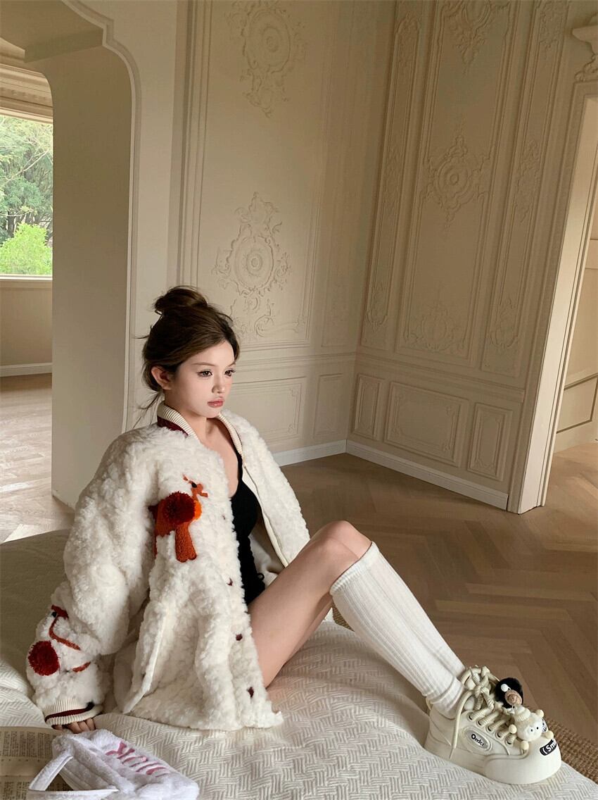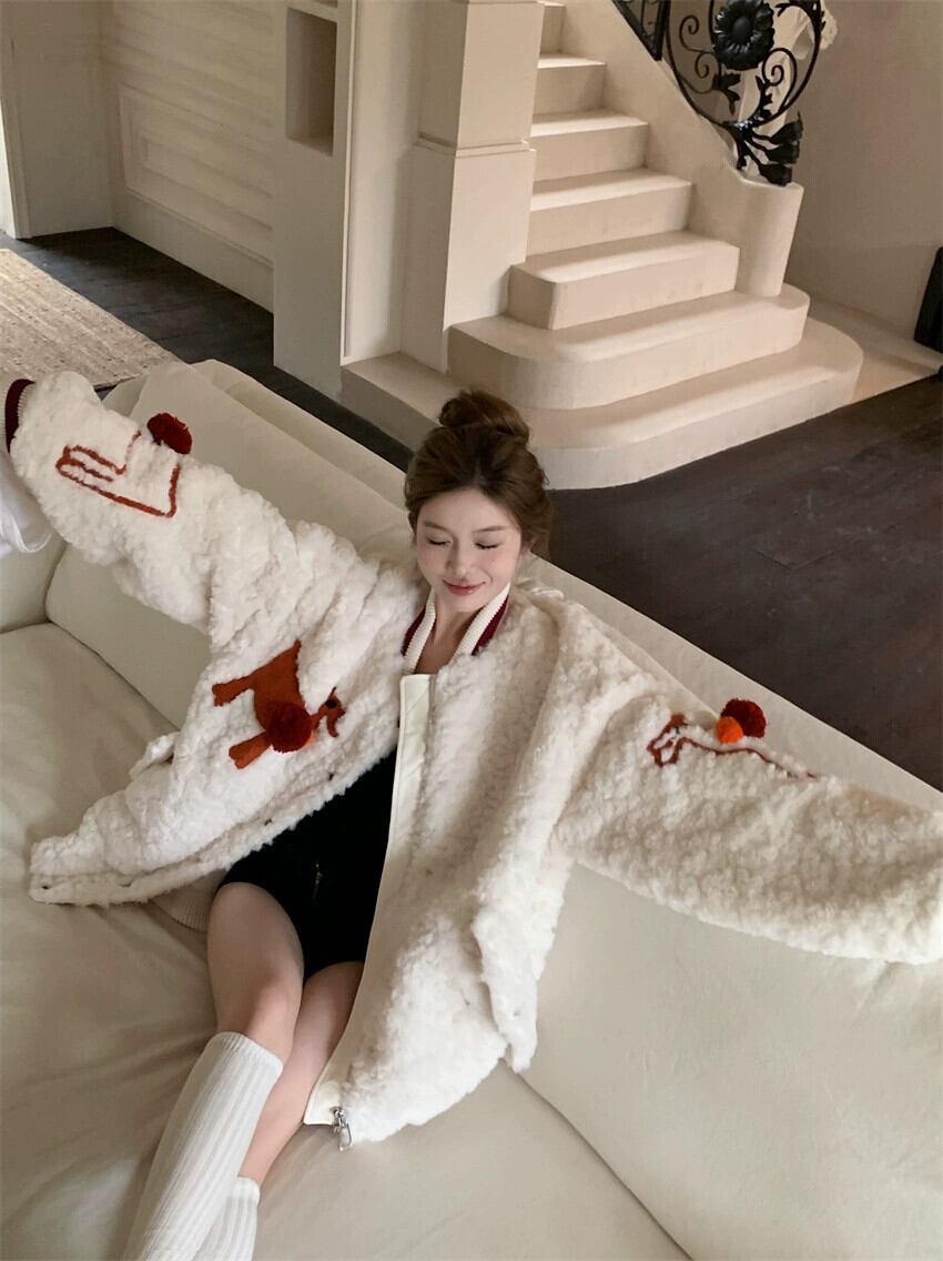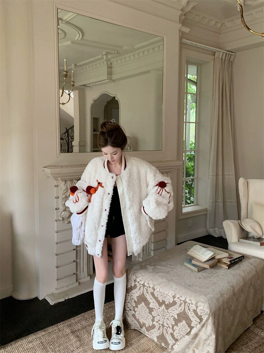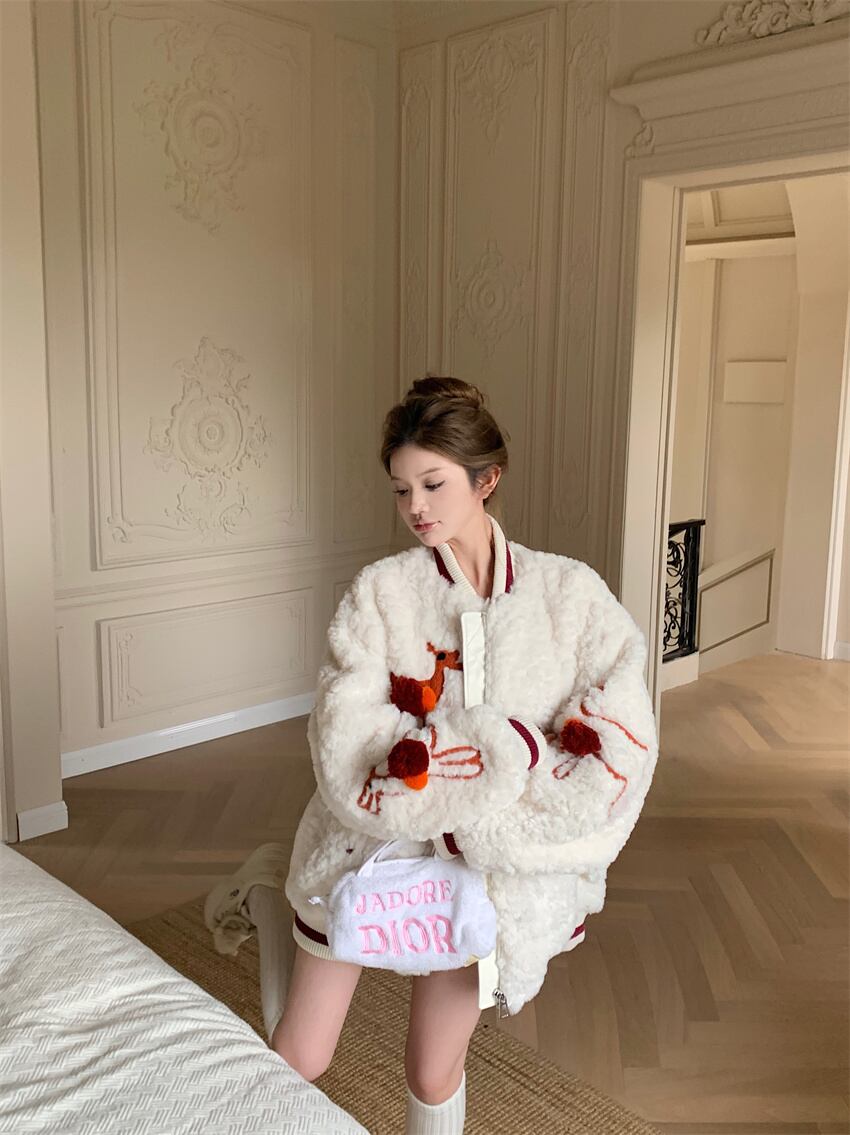 ラムウールジャケットレディース冬増粘2023新スタイル今年人気の美しいアメリカンレトロカジュアル野球ユニム ウィンター 冬物 857164464754504