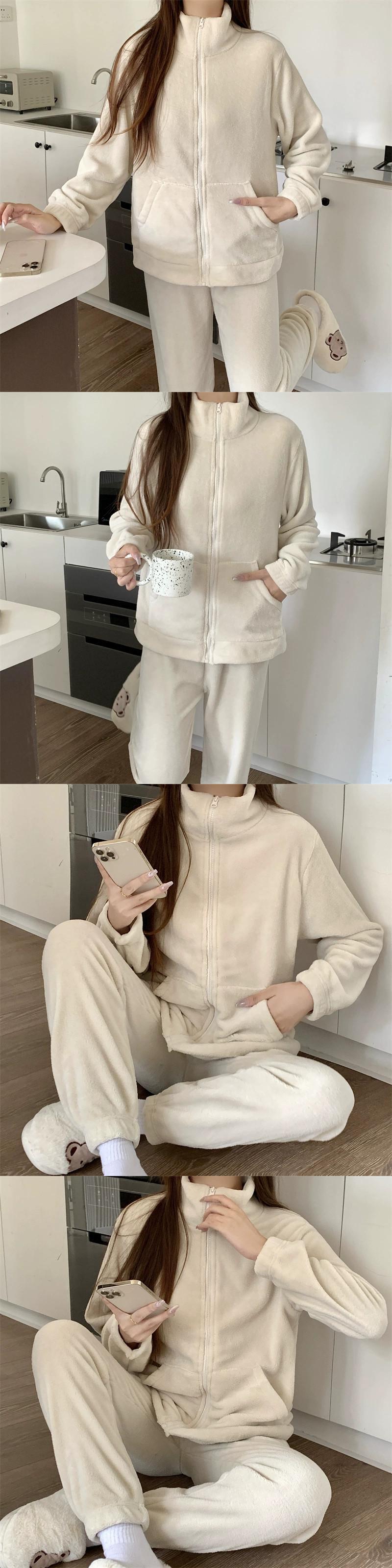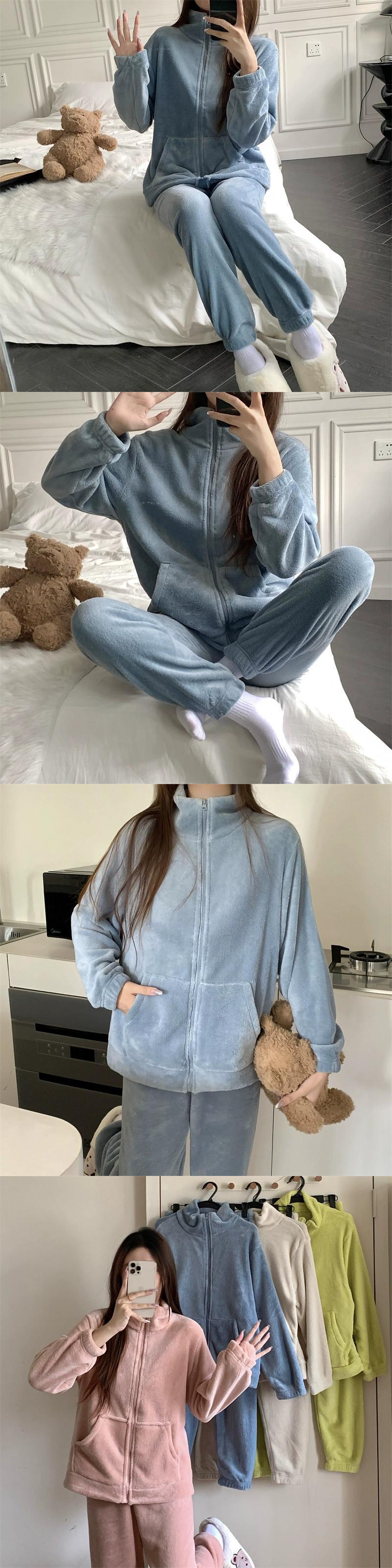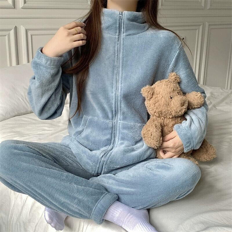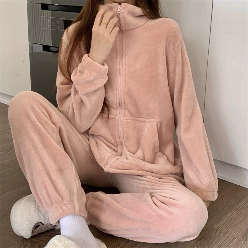 コーラルベルベットパジャマ女性冬プラスベルベットと肥厚2023新しいスタイルは外で着用できますシンプルな長袖ズボンホーム服セット ロング ウィンター 冬物 8571645070678389