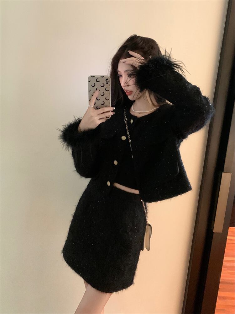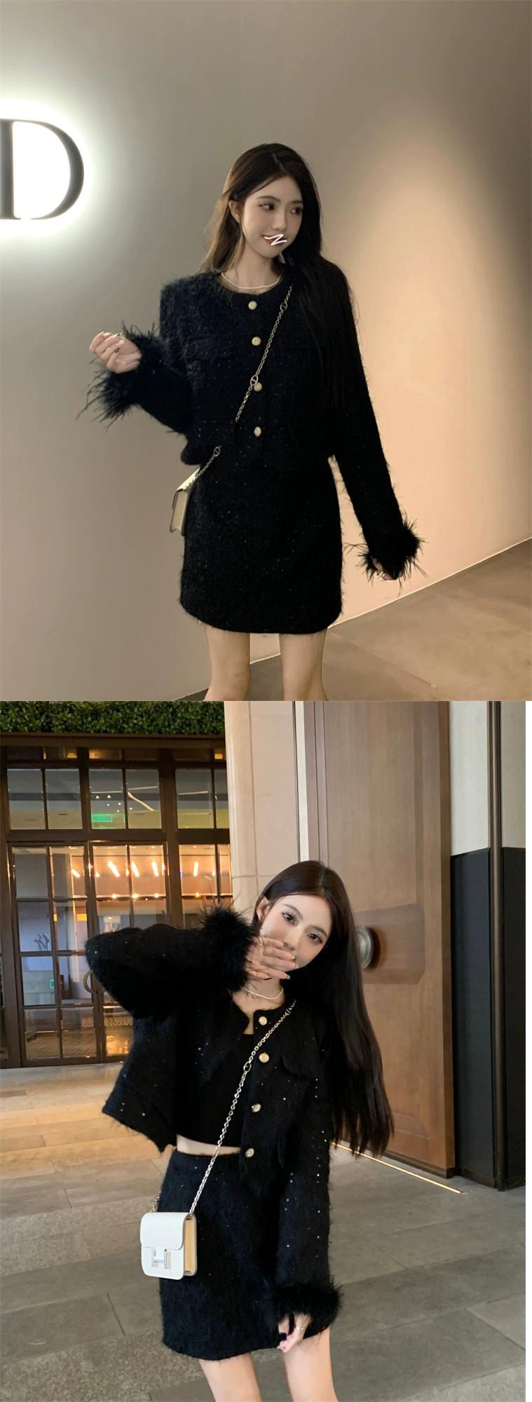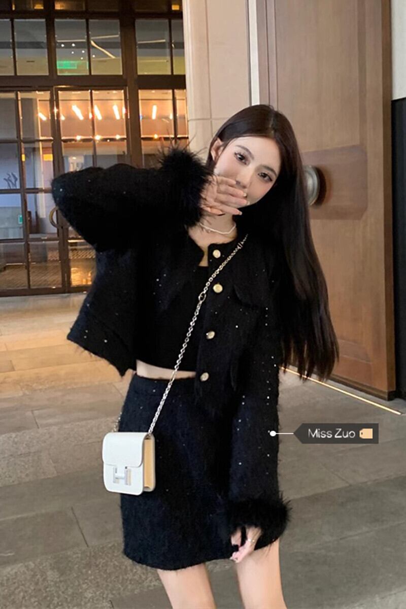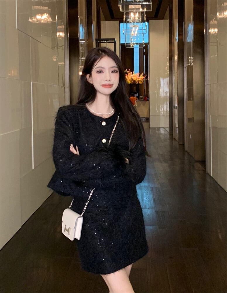 黒の小さな香りのよいスパンコールのジャケットの女性の 2023 秋冬の新しいスタイルのフランスの女性の気質のハイエンドのショートトップ ブラック オータム 秋物 ウィンター 冬物 857167857391075