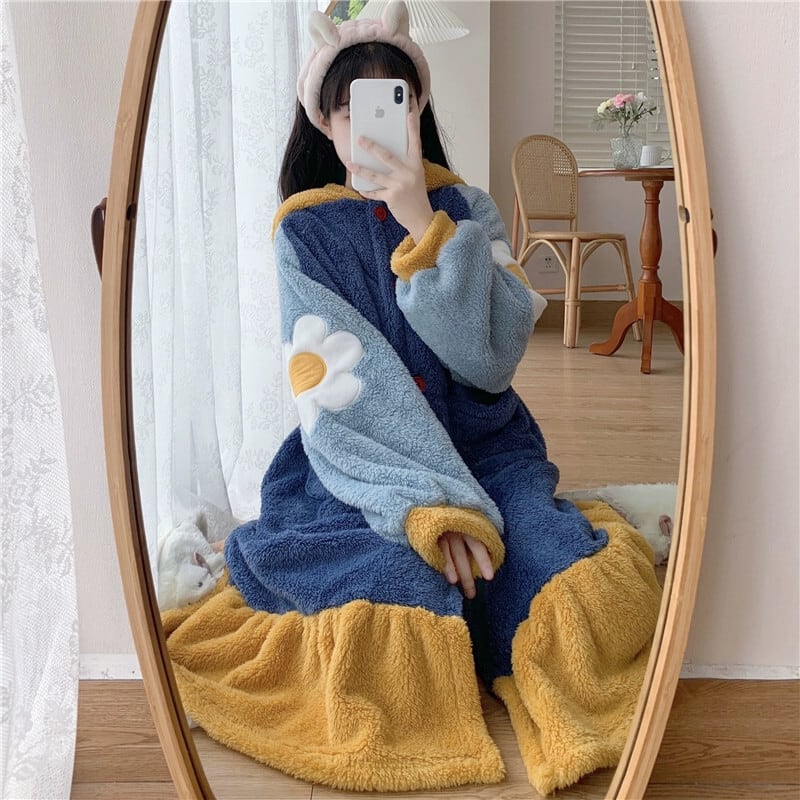 コーラルベルベットのネグリジェ女性の冬肥厚ワンピースパジャマ 2023 新インスタイルネグリジェフランネルホーム服 ウィンター 冬物 8571683830279326