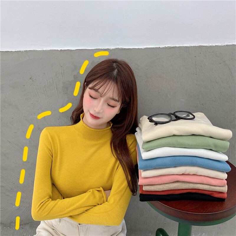 タートルネックボトリングシャツ女性春、秋、冬のスタイルセーター 2023 新しい黄色のセーター長袖トップ ロング スプリング 春物 オータム 秋物 ウィンター 冬物 8571678658044675