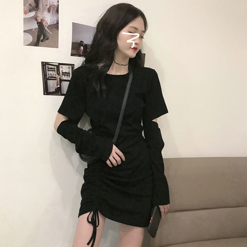 純粋な欲望のドレスの女性の秋冬 2023 新しい甘いデザインの小さな黒のヒップカバーショートスカート ブラック 大人ガーリー スウィート キュート カジュアル オータム 秋物 ウィンター 冬物 8571616478951669