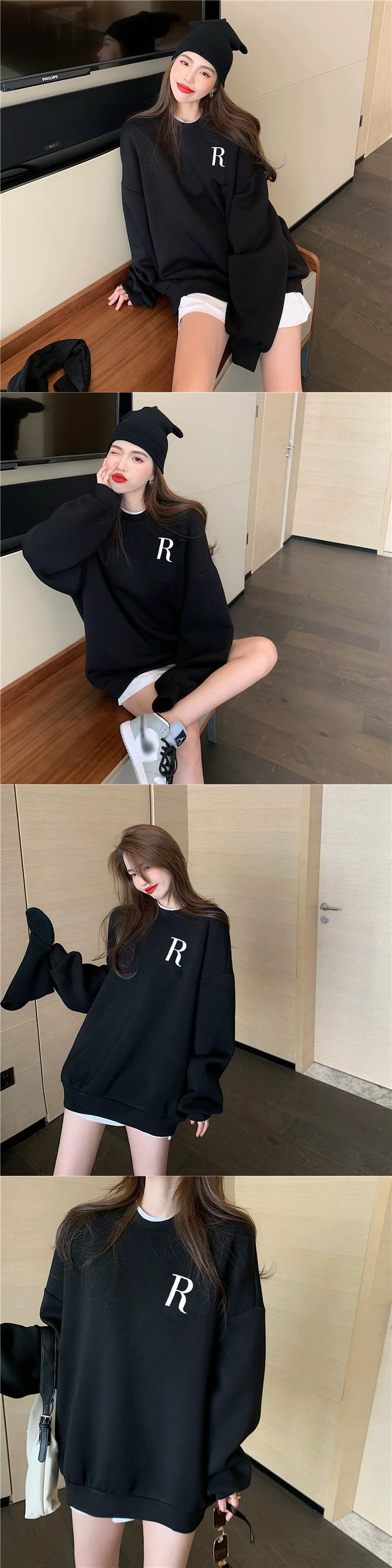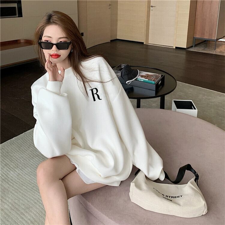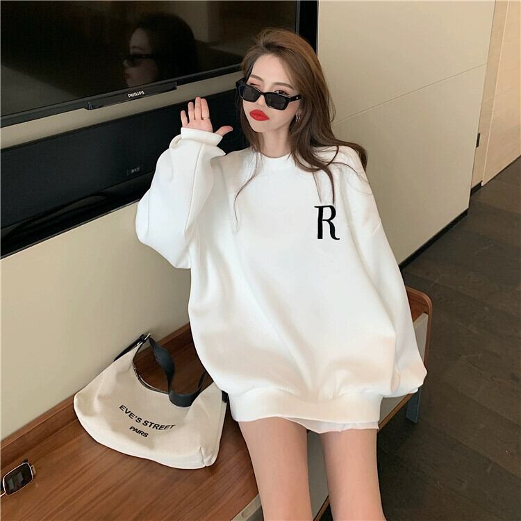 白いミッドレングスのスウェットシャツの女性の2023春と秋の新しいルーズスタイルのオーバーサイズのトップ服トレンディなイン ホワイト スプリング 春物 オータム 秋物 8571664424966838