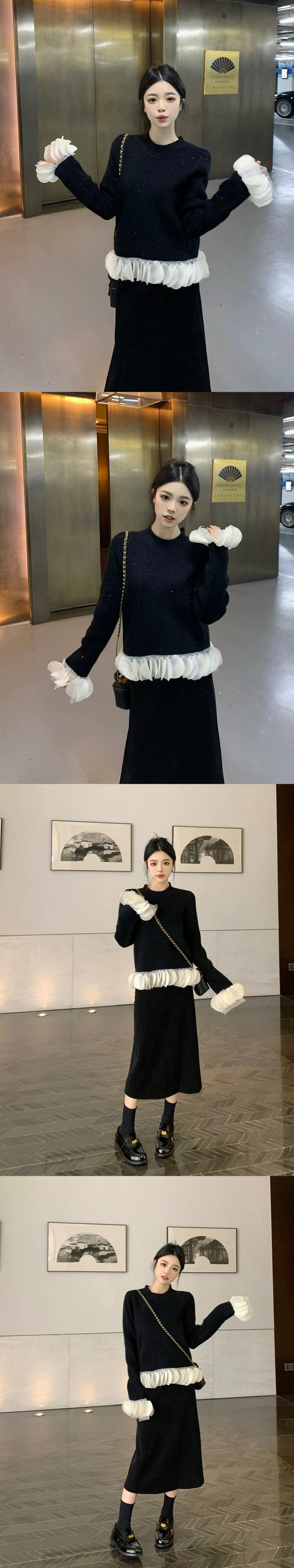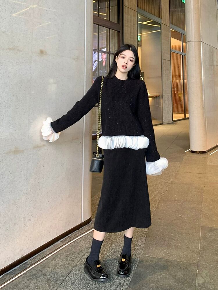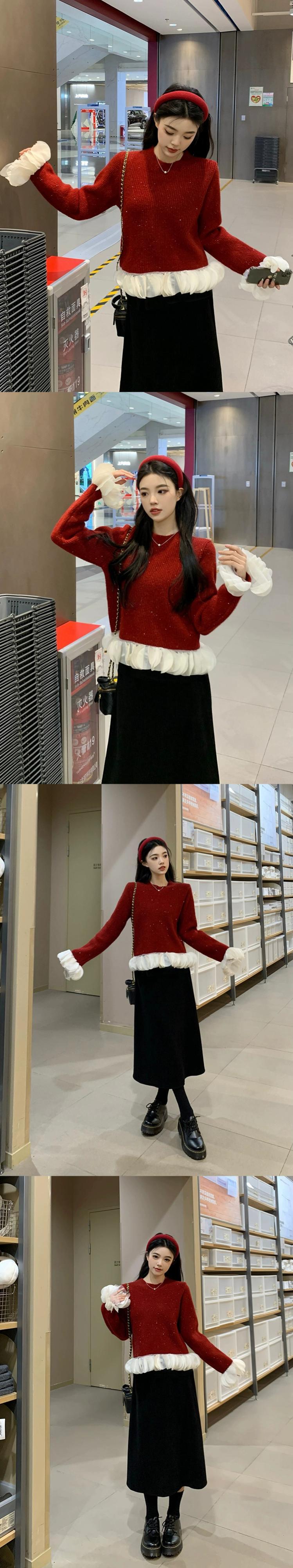 色:赤いセーター,黒いセーター,黒スカート