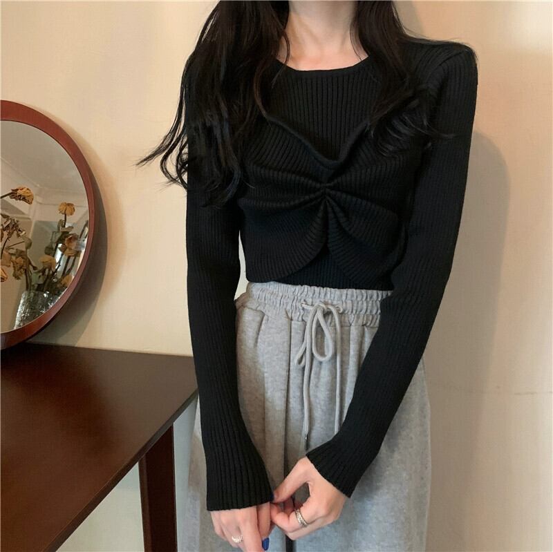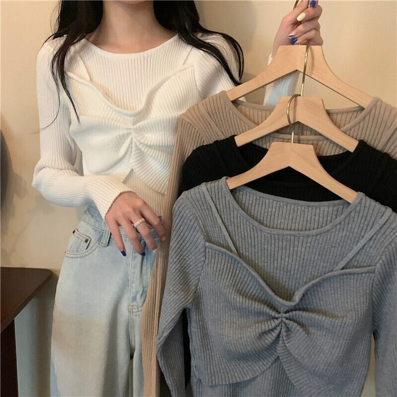 春、秋、冬の白いセーター付きボトリングシャツ女性 2023 新しいデザインファッショナブルなセーター長袖トップ ロング ホワイト スプリング 春物 オータム 秋物 ウィンター 冬物 8571690748231610