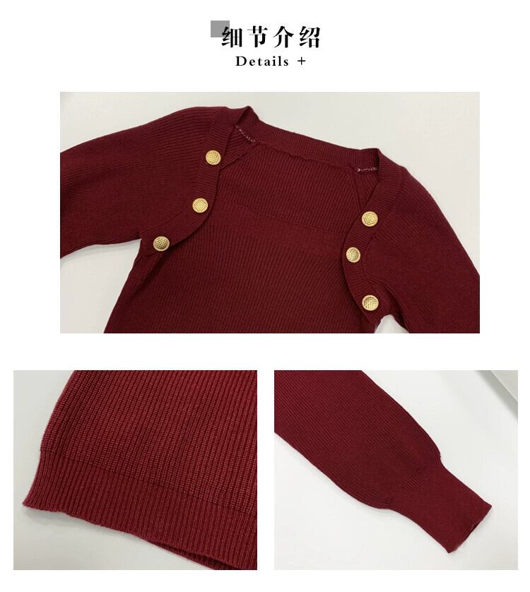 赤いセーターの女性の秋スタイルインナーレイヤリングシャツ 2023 新デザインニッチショートスクエアカラートップ レッド オータム 秋物 スクウェア 8571675289212755