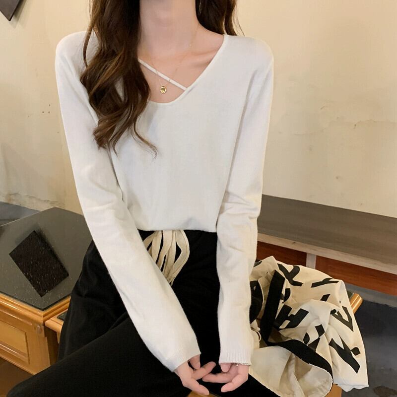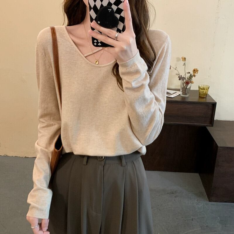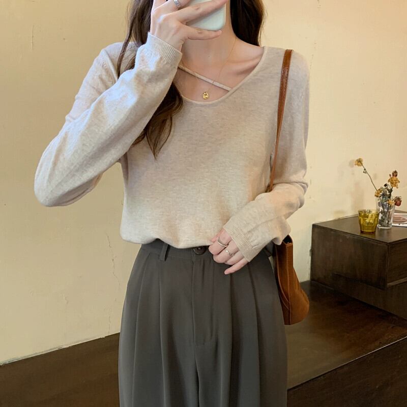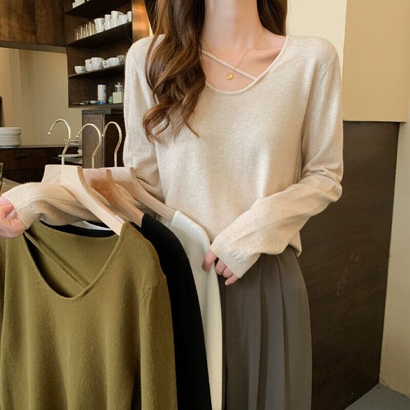 ボトミングセーター女性 2023 秋の新しい怠惰なスタイルのセーターニッチデザインシックな長袖トップ ロング オータム 秋物 8571654673627102