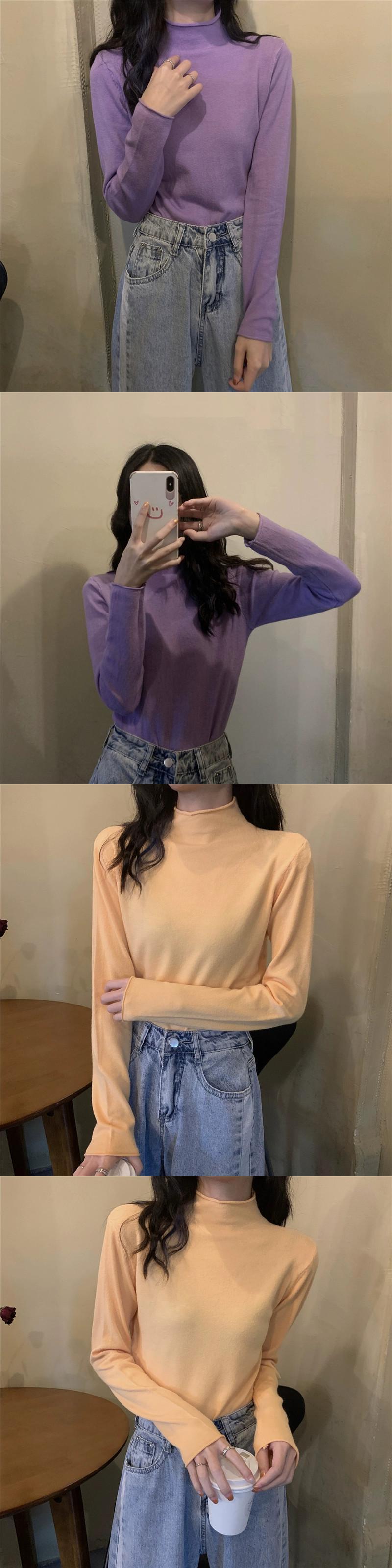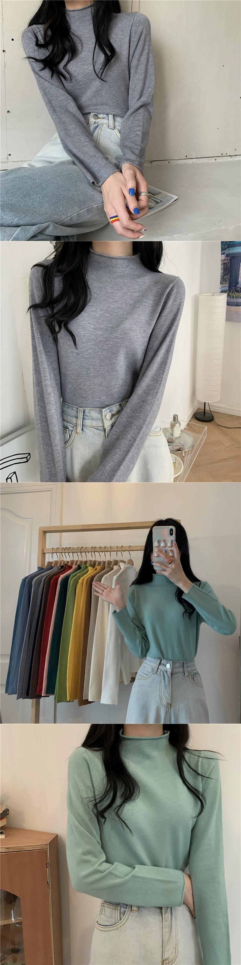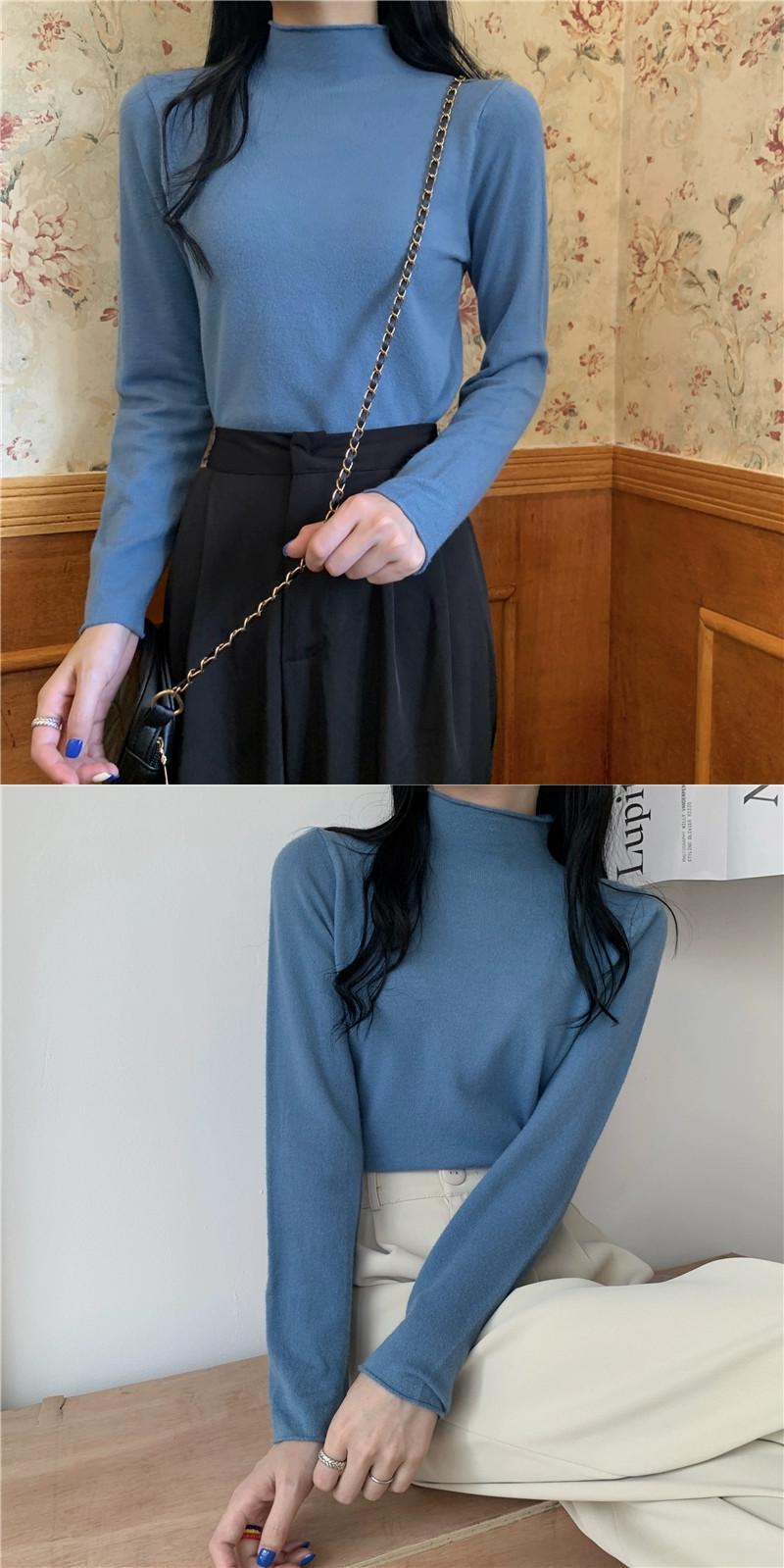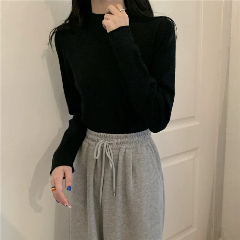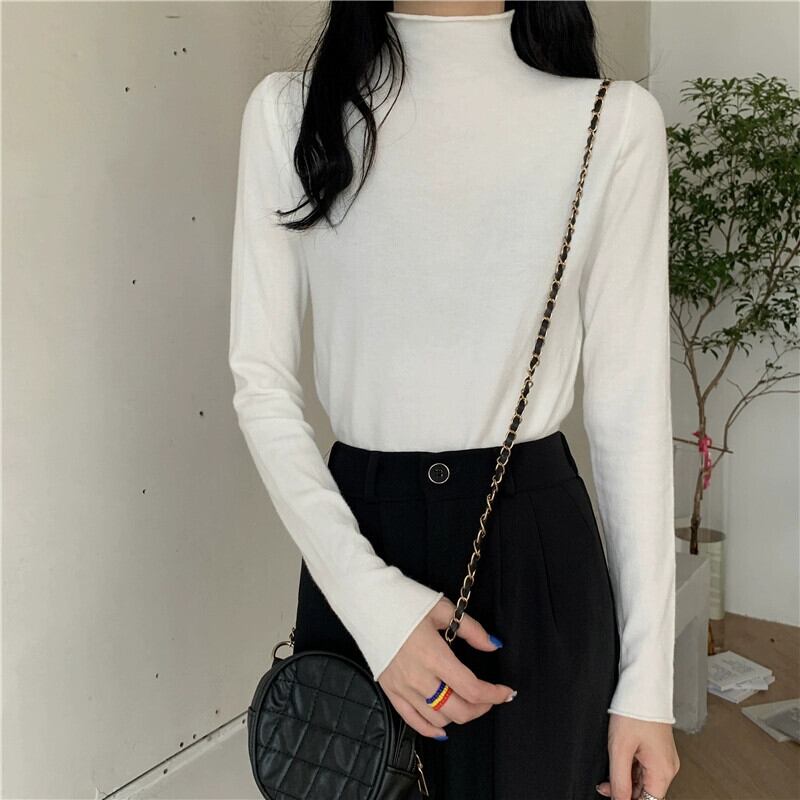 ハーフタートルネックニットボトシャツ女性の秋と冬のインナーセーター 2023 新デザインニッチ黒長袖トップ ロング ブラック オータム 秋物 ウィンター 冬物 8571617913795399