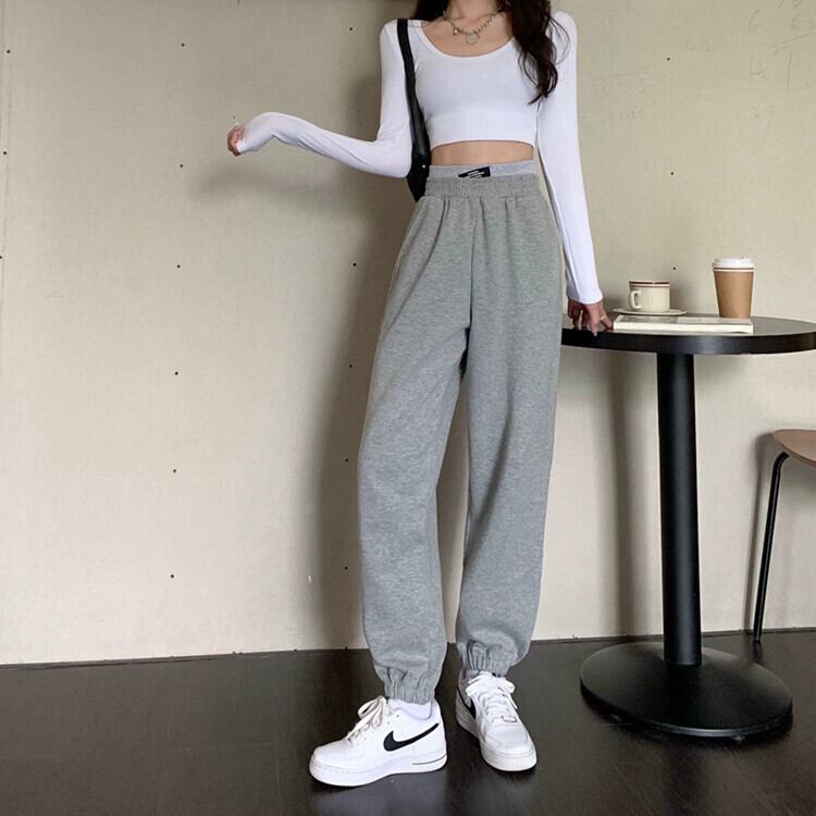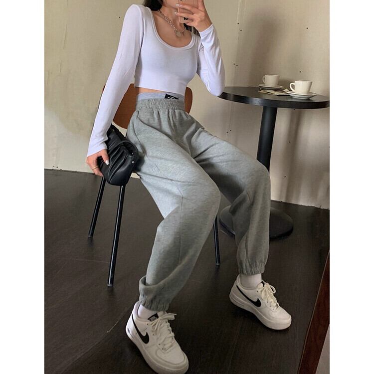 グレースウェットパンツ女性の秋ルーズレギンススウェットパンツ 2023 新しいアメリカンスタイルの小さなハイウエストカジュアルパンツトレンディな ハイウェスト オータム 秋物 8571658129383514
