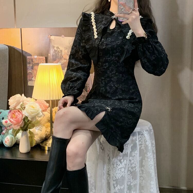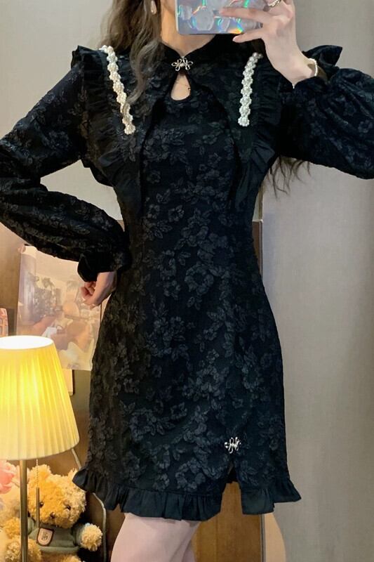 改良されたチャイナドレス女性の2023年秋の新デザインニッチシックなハイエンドショートスカート小人 オータム 秋物 8571637211672510