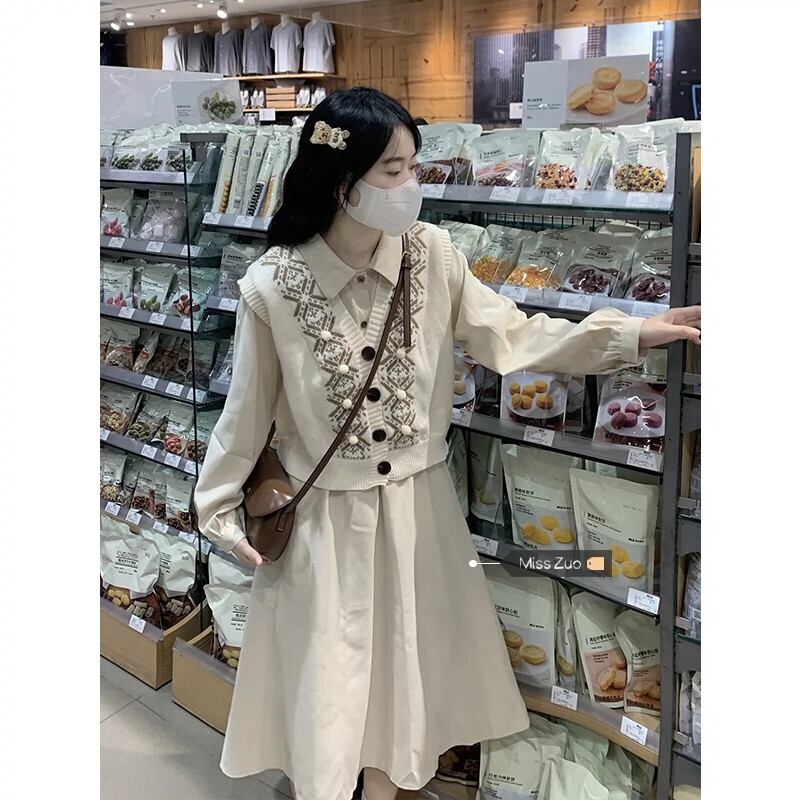 長袖シャツドレス女性の2023秋の新しい気質優しいスタイルの初恋プチインナーロングスカート オータム 秋物 8571697252992189