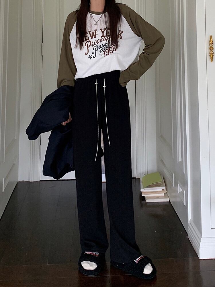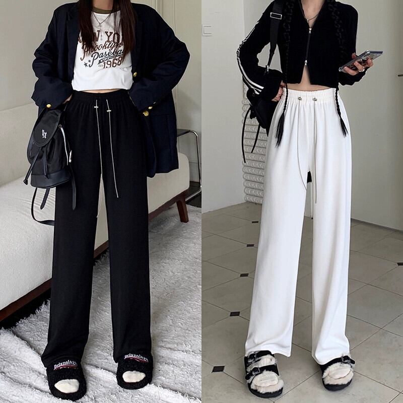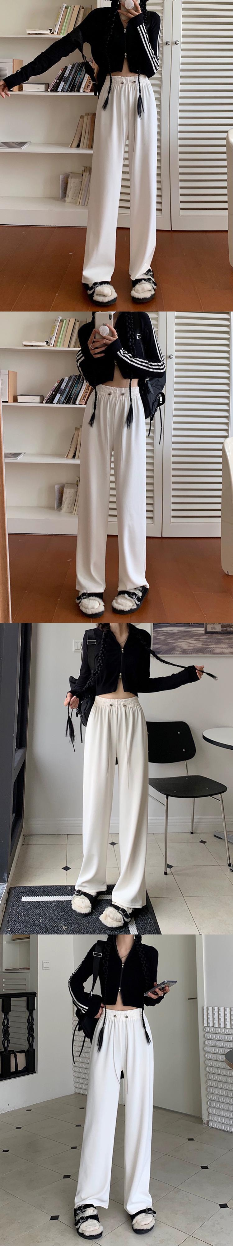 白ワイドレッグパンツ女性春ベルベットハイウエストドレープ 2023 新しい小さなストレートルーズカジュアルロングパンツ ホワイト スプリング 春物 8571642277149761