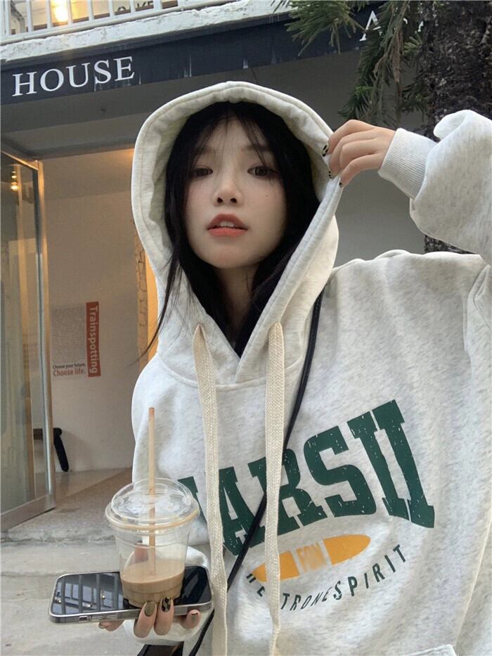 フード付きトレーナー女性春ベルベット肥厚 2023 新しいアメリカンレトロ緩い怠惰な長袖トップトレンディなイン ロング スプリング 春物 85716833334602