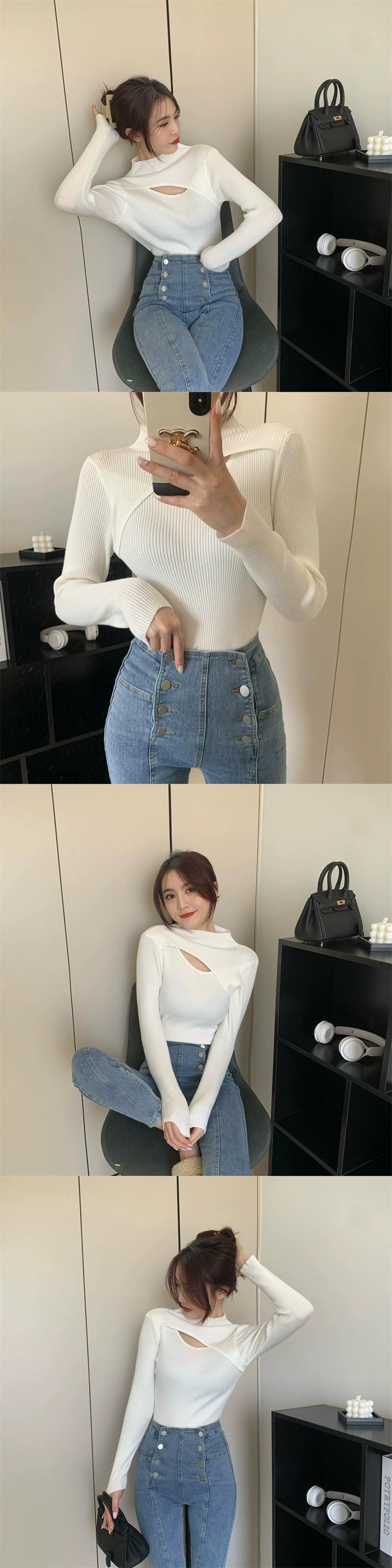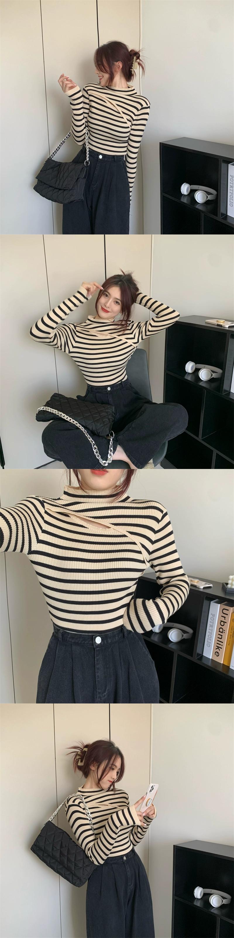 ハーフタートルネックニットボトシャツ女性の秋と冬のセーター 2023 新しいスタイルスリムフィットトップ オータム 秋物 ウィンター 冬物 8571611056672347