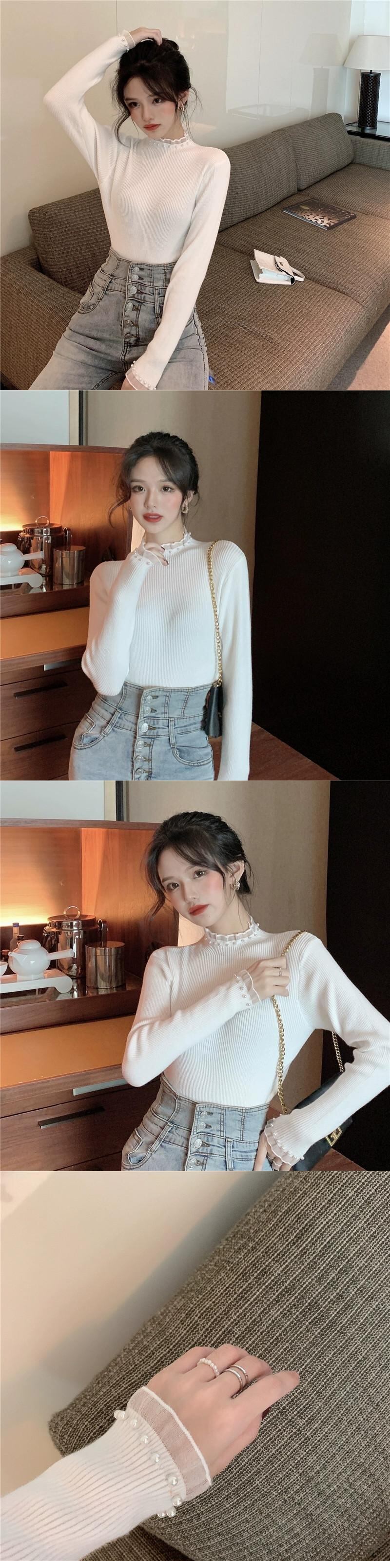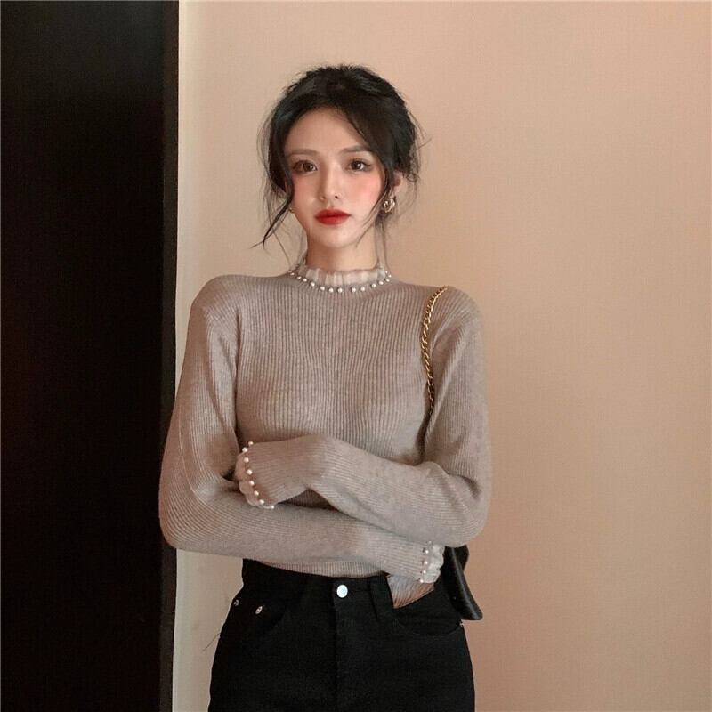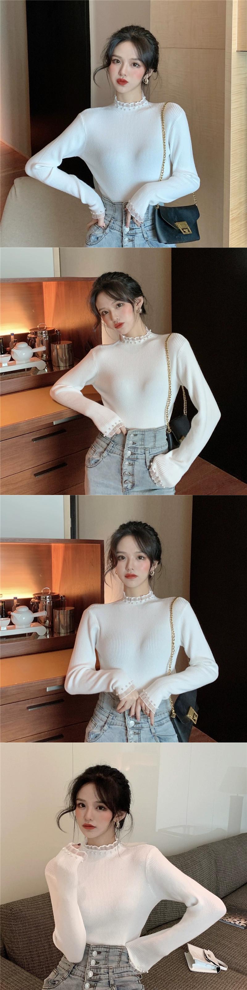 ハーフタートルネックボトミングセーター女性の秋 2023 新しいスタイルのハイエンドのユニークなデザインスリムインナーセーター オータム 秋物 8571632754286937