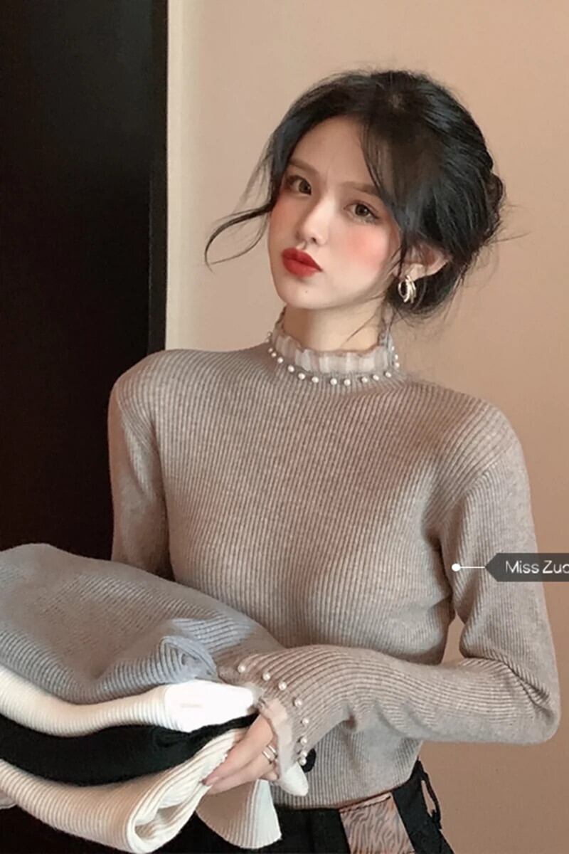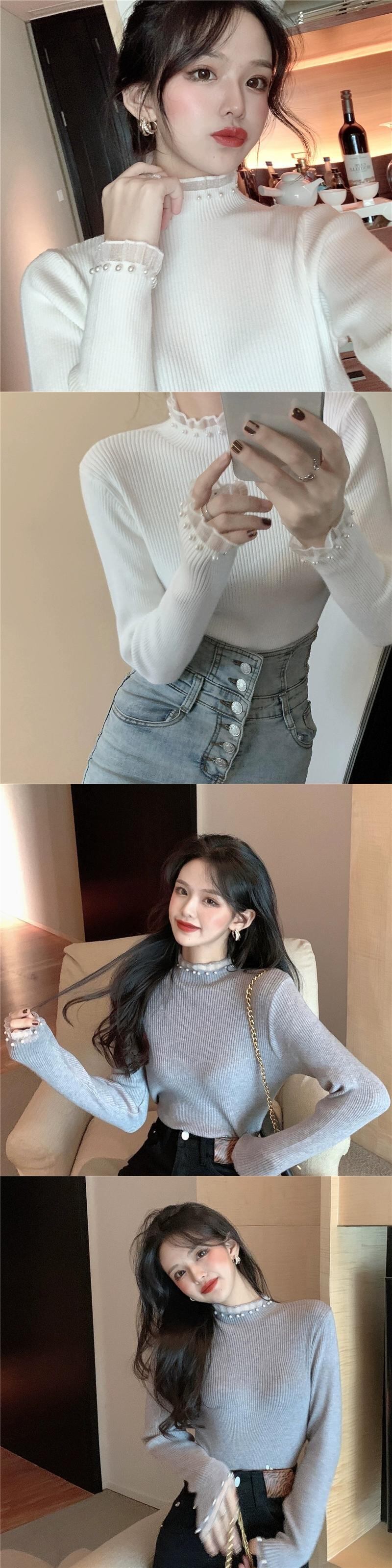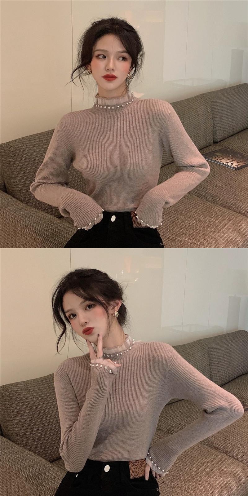 ハーフタートルネックボトミングセーター女性の秋 2023 新しいスタイルのハイエンドのユニークなデザインスリムインナーセーター オータム 秋物 8571632754286937