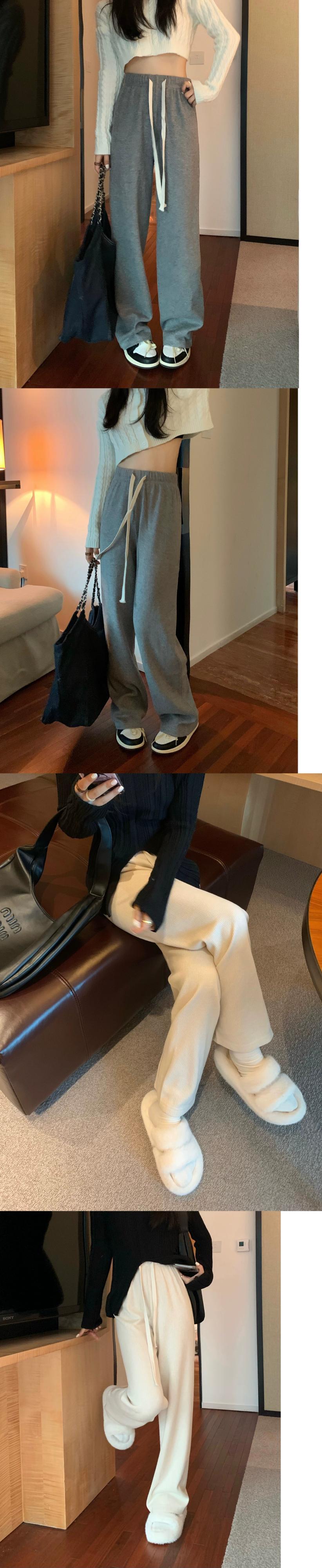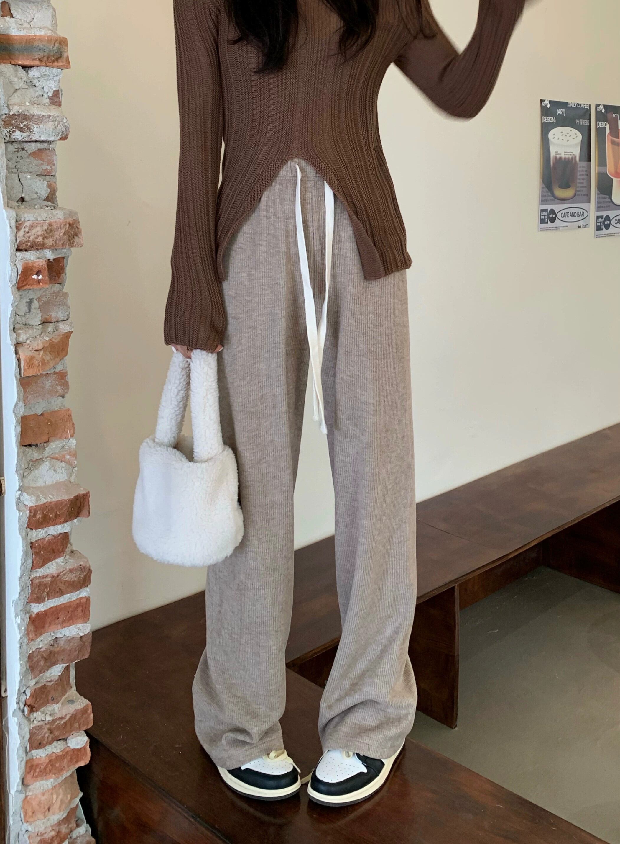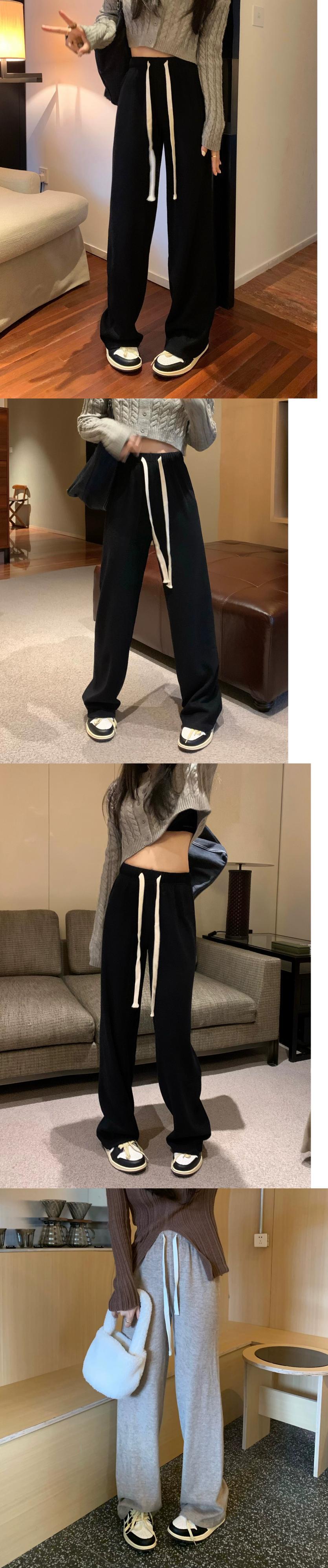 模造カシミヤワイドレッグパンツの女性の秋のハイウエストドレープ2023新しい梨型ストレートカジュアルフロアレングスパンツ オータム 秋物 8571611364978350