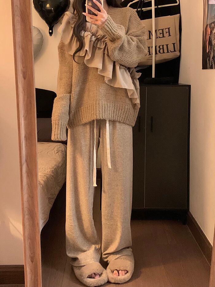 キャメル V ネックセーター女性、スタイル怠惰なスタイルの 2023 年秋冬新しい暖かく、柔らかくワックスのようなハイエンドニットセータートップ オータム 秋物 ウィンター 冬物 Vネック 8571653305743120