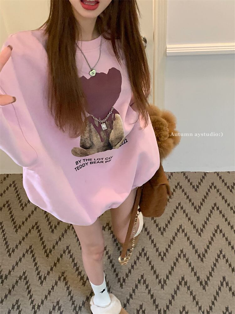 ピンクのベルベットの長袖スウェットシャツの女性のデザインニッチ秋冬 2023 新しいスタイル怠惰なスタイルのシックなトップ ロング オータム 秋物 ウィンター 冬物 8571641516959799