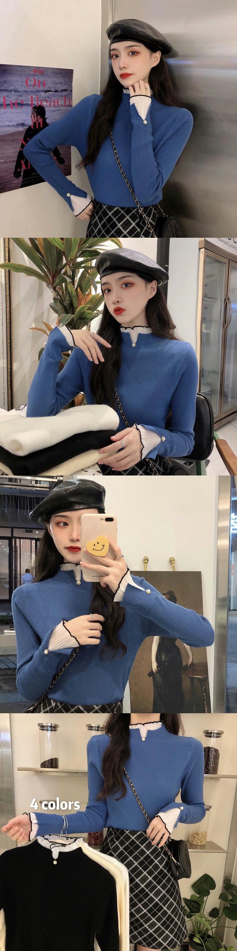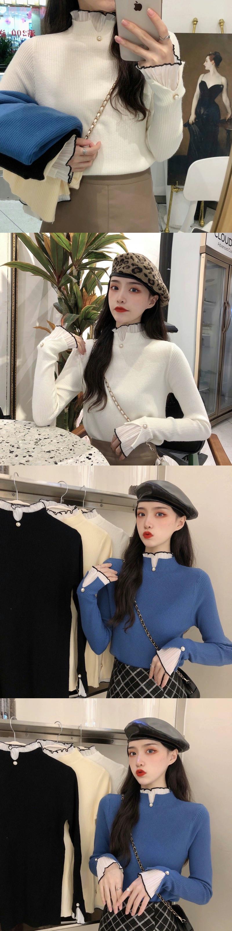ハーフタートルネックボトムセーターレディース、秋冬インナーセーター、ハイエンド、優しい気質、スタイルフェイクツーピーストップ ウィンター 冬物 8571676424122185