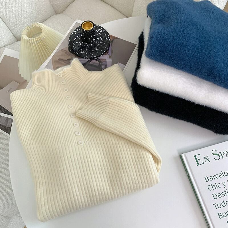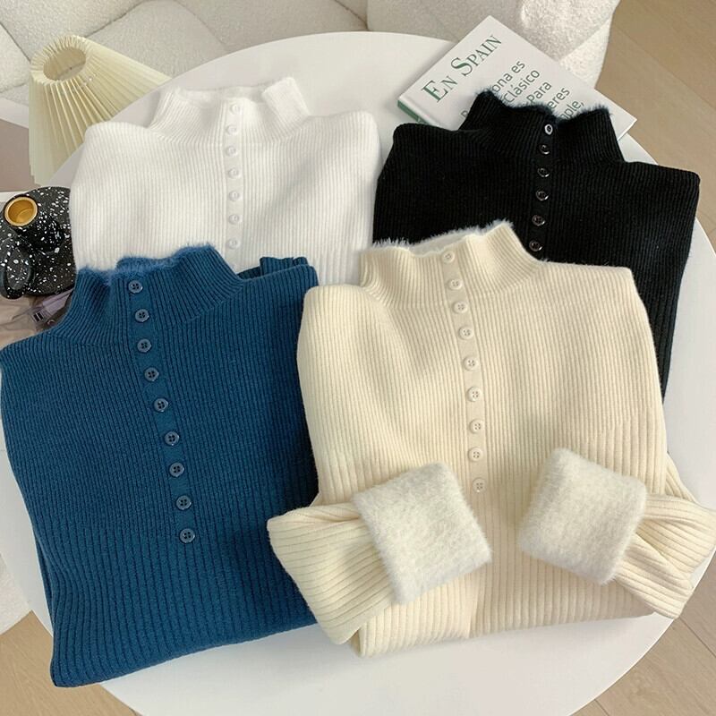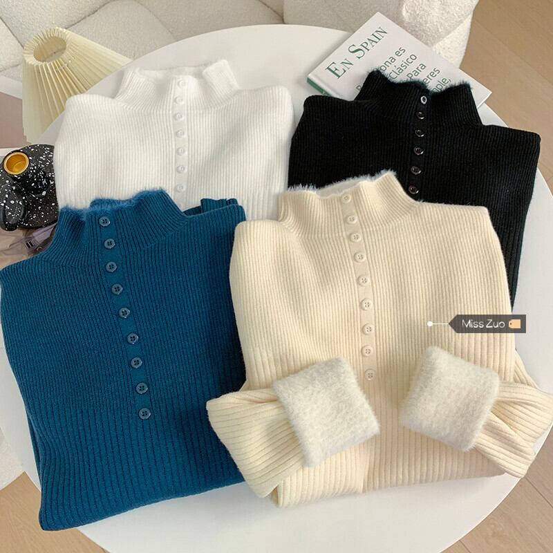アプリコットハーフタートルネックセーター女性の秋と冬プラスベルベット 2023 新デザインニッチインナーレイヤリングセーター オータム 秋物 ウィンター 冬物 8571693287454889