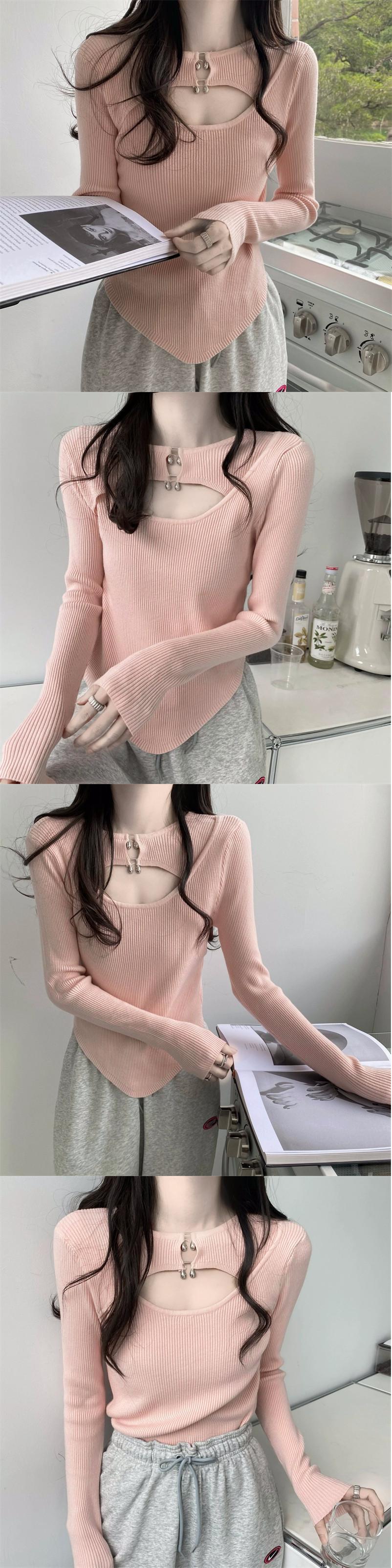 ブルー中空ニットボトムシャツ女性の2023年秋の新しいスタイルのユニークでユニークなデザインのニッチインナートップ オータム 秋物 8571647020832833