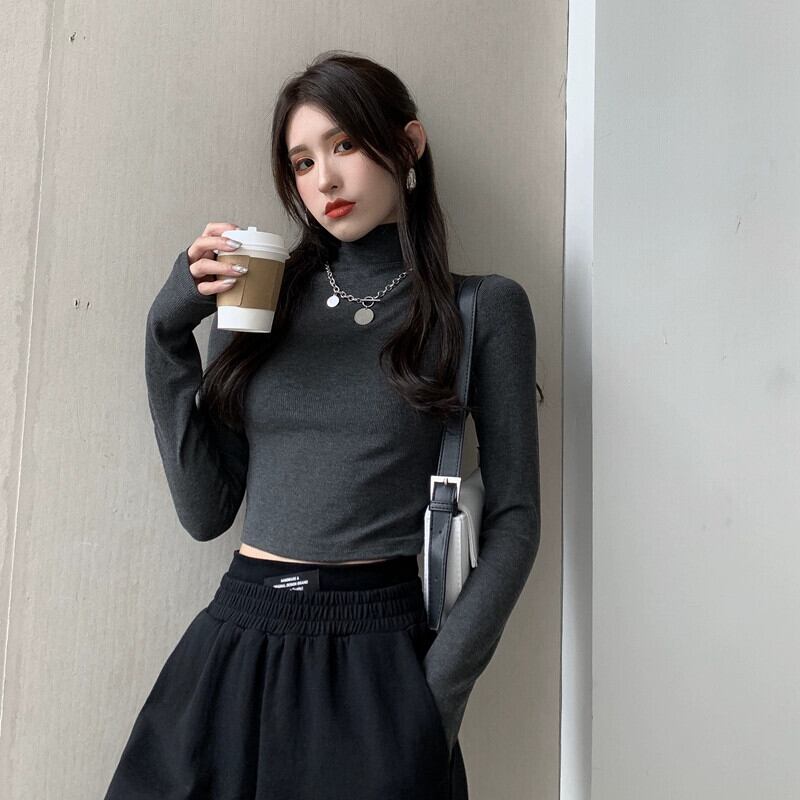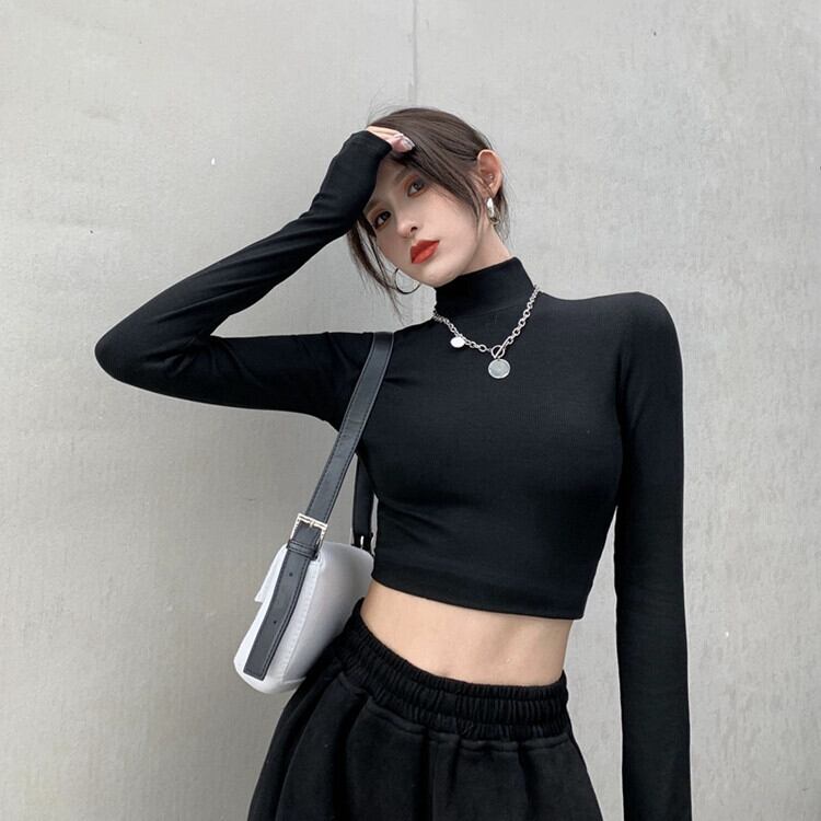 ニッチセミタートルカラーショートソリッドカラーTシャツレディース半袖スリムフィットトップシックなインナーレイヤリングシャツ 8571630628010011