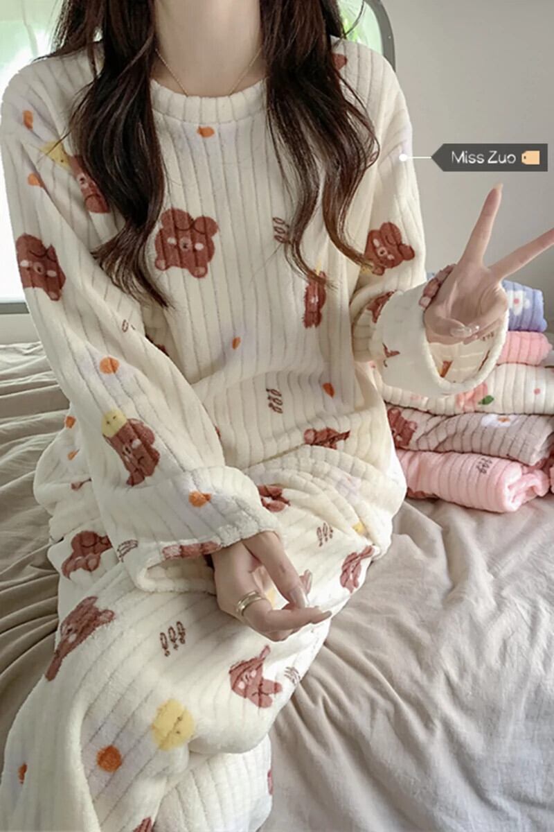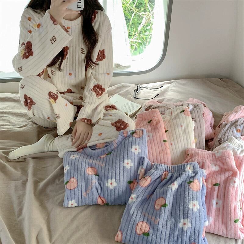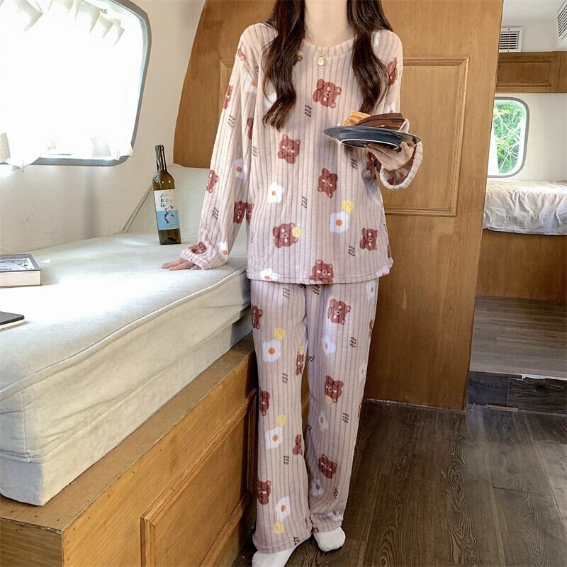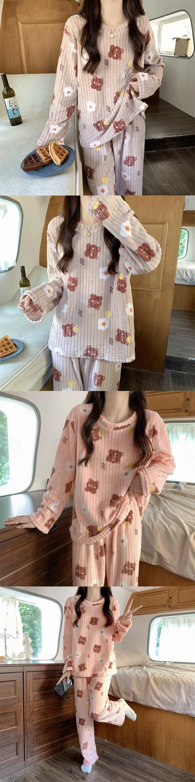 コーラルベルベットパジャマレディース、インターネットセレブスタイル、2023年冬の新スタイル、暖かくてウェアラブルなホーム服ツーピーススーツ ウィンター 冬物 8571637355007776