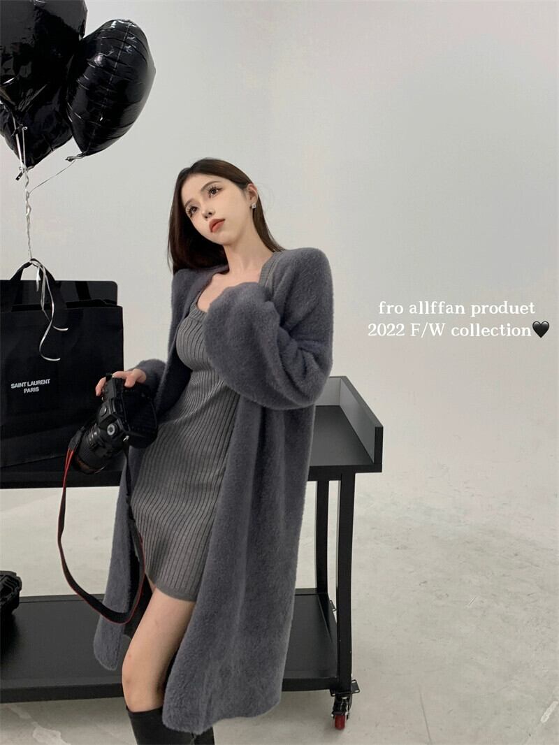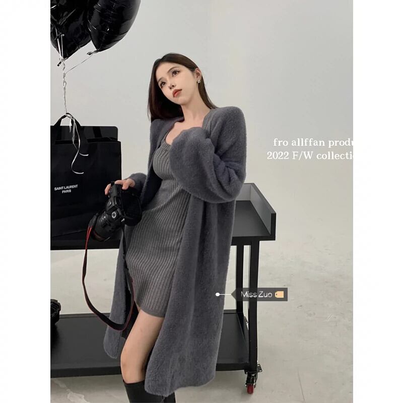 優しい風ソフトワックスっぽいグレーのセータージャケット女性の冬 2023 新しい緩い怠惰なスタイルのミッドレングスニットカーディガン ウィンター 冬物 8571695887364222