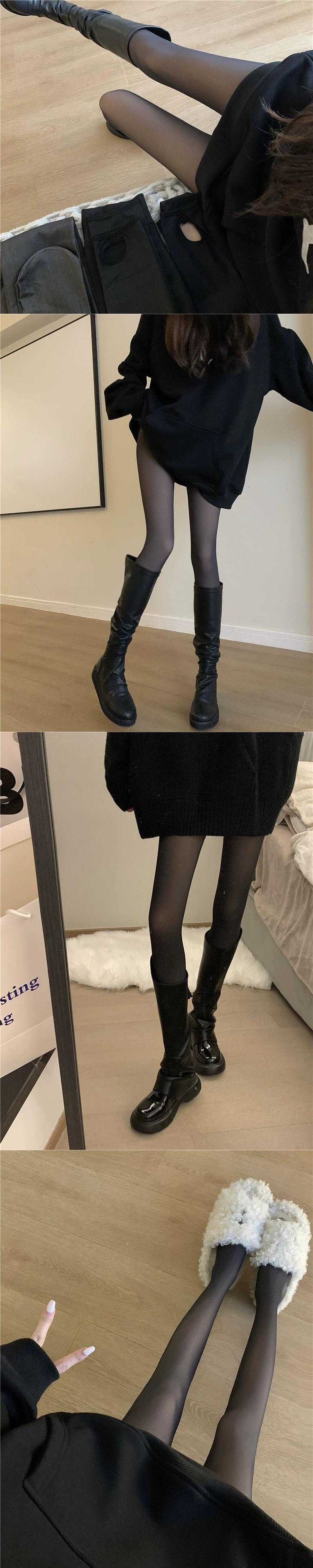 素足アーティファクトボトミングストッキング女性の秋と冬のプラスベルベットと厚みのある偽シースルー肉美脚と足パンストセクシーな黒ストッキング ブラック オータム 秋物 ウィンター 冬物 タイツ ソックス 8571651747048148