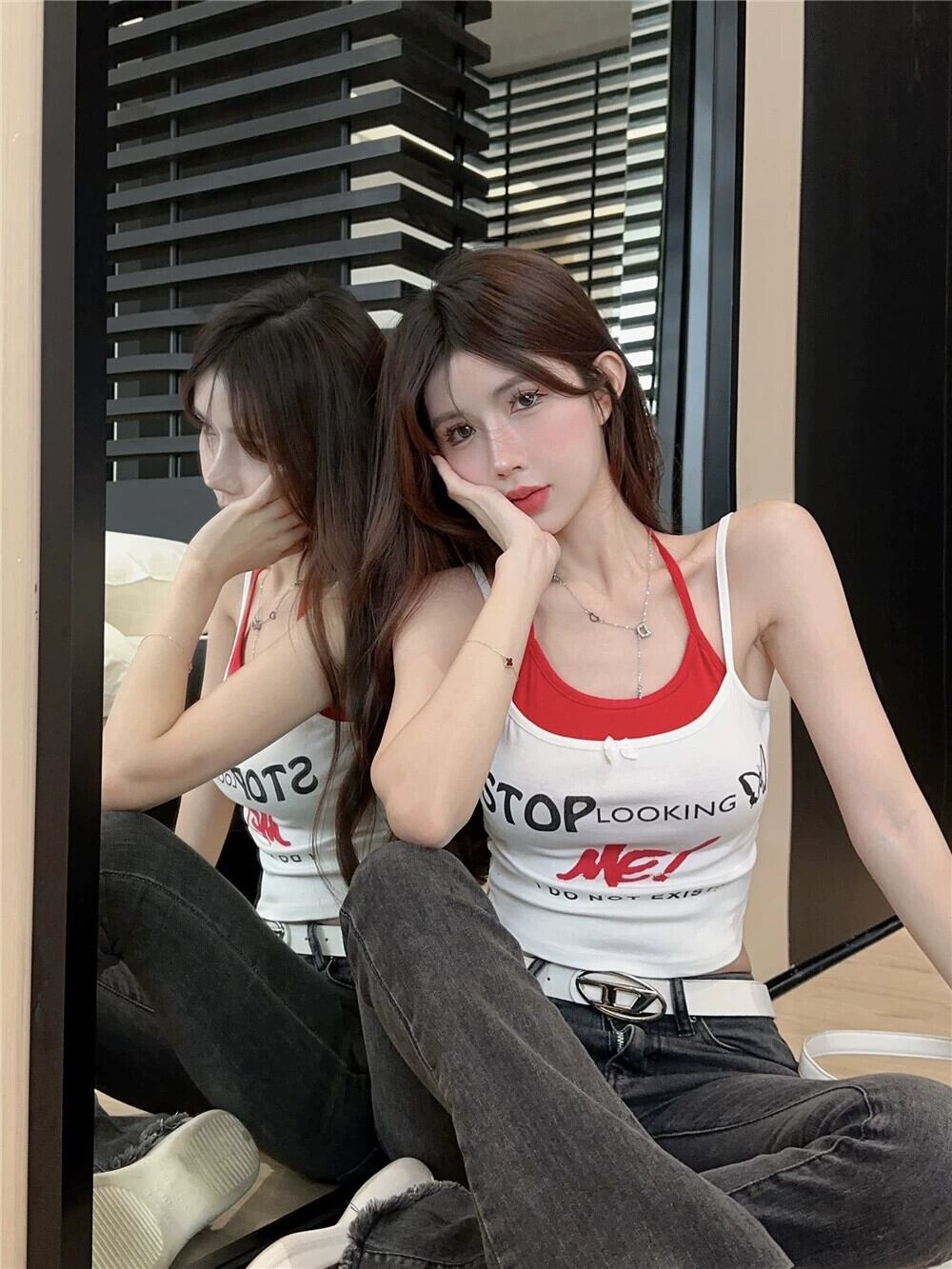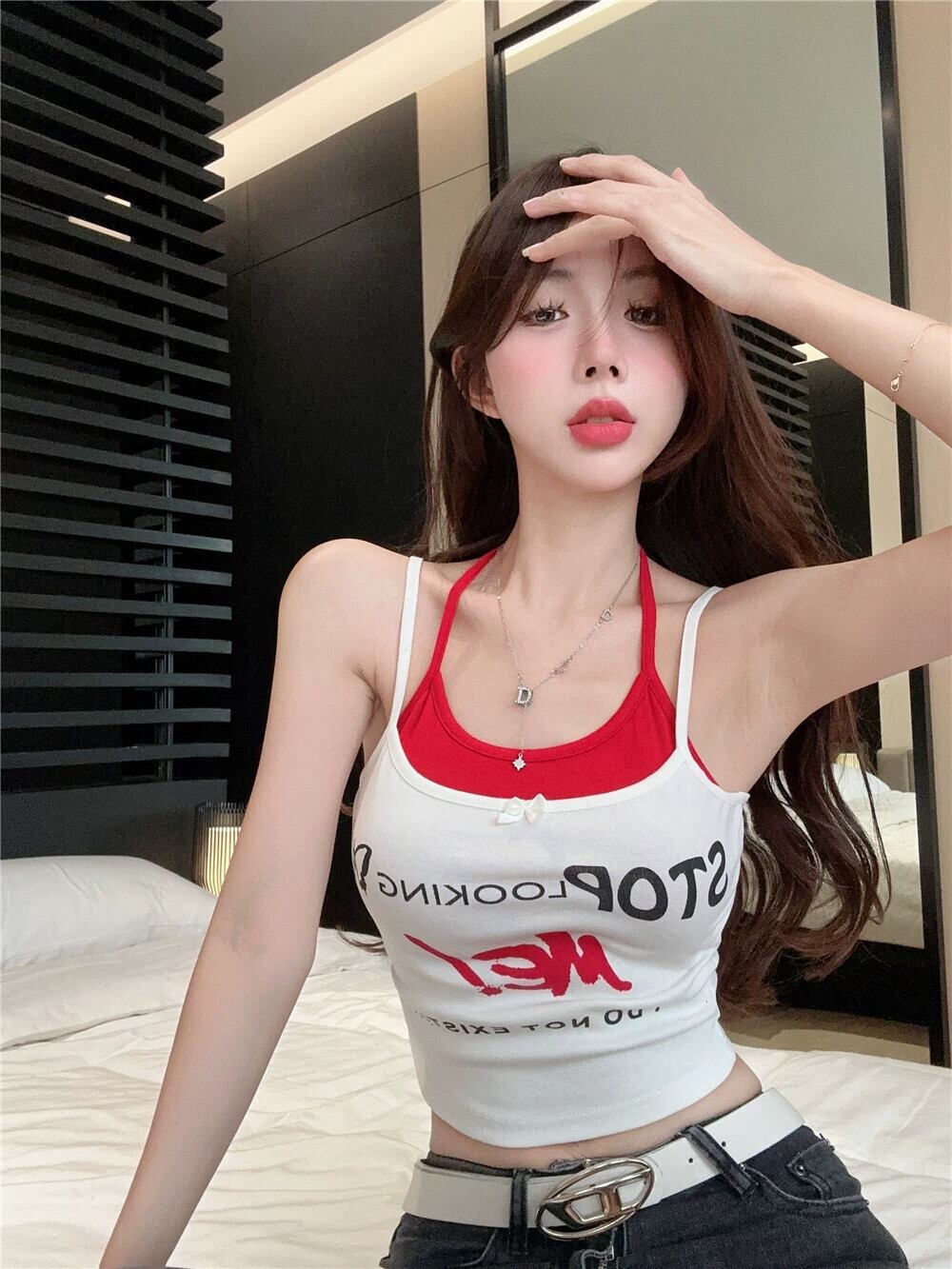 ホルターネック キャミソール レディース 胸巻き 夏 アメリカン レトロ ネクタイ セクシー スリム フェイク ツーピース 美しい バック トップ サマー 夏物 8571648256597954