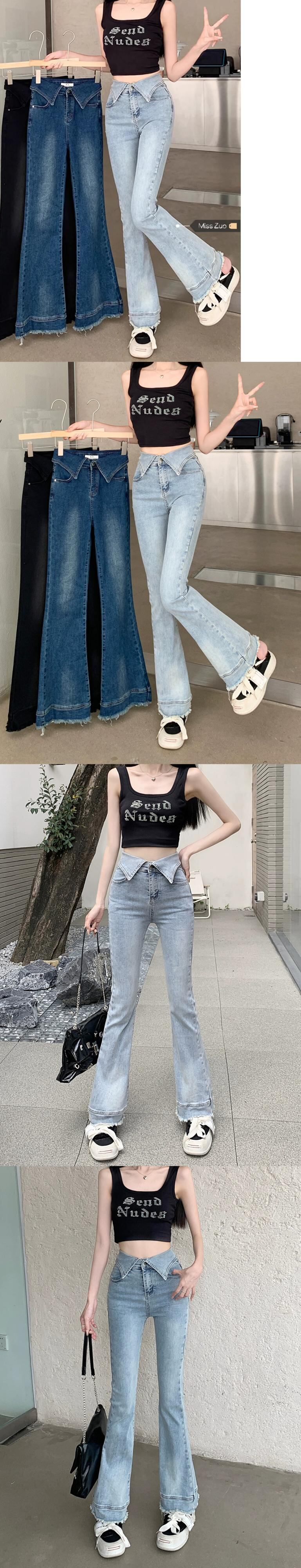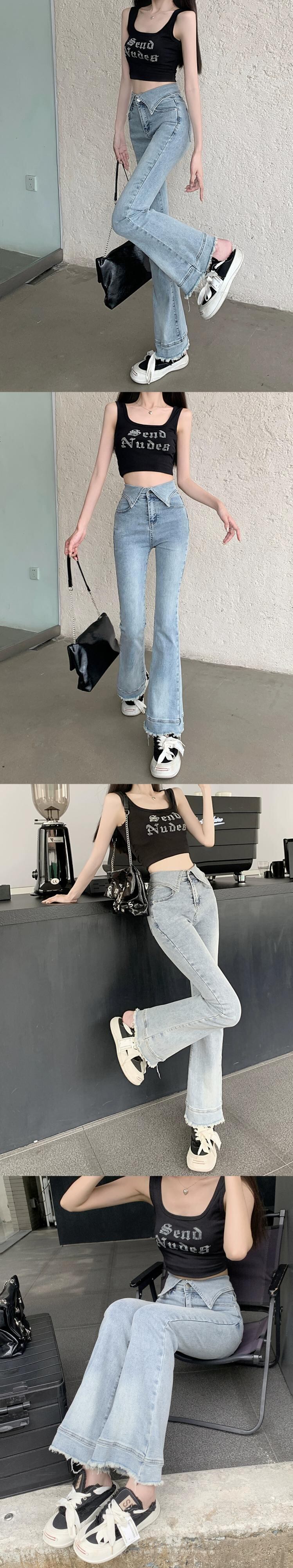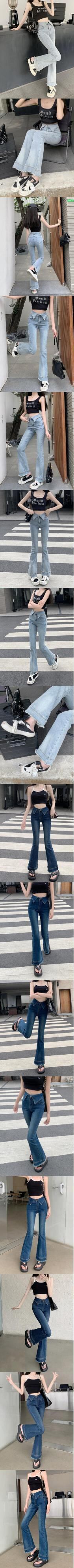 ライトブルーマイクロフレアジーンズ女性2023年夏新デザインニッチハイウエストストレートスリムフロアレングスパンツ レッド サマー 夏物 8571652482071605