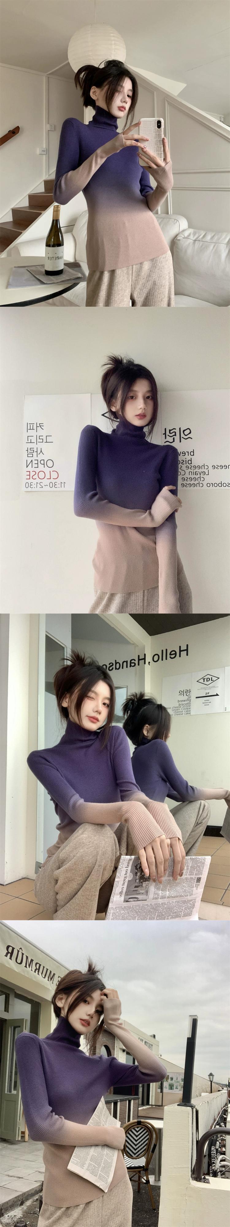 グラデーションカラーニットボトシャツ女性の秋と冬のインナータートルネックセーター 2024 新しいスリムフィットデザイントップ オータム 秋物 ウィンター 冬物 8571686404668472