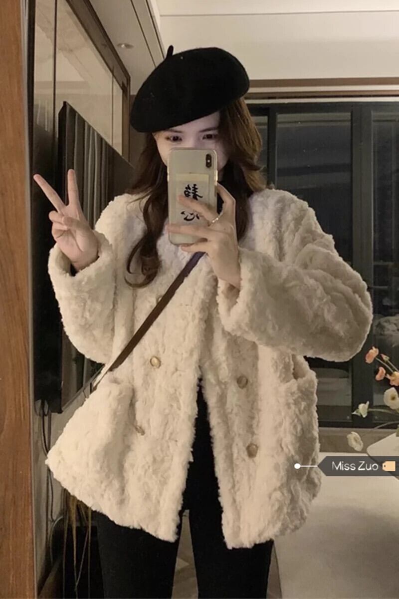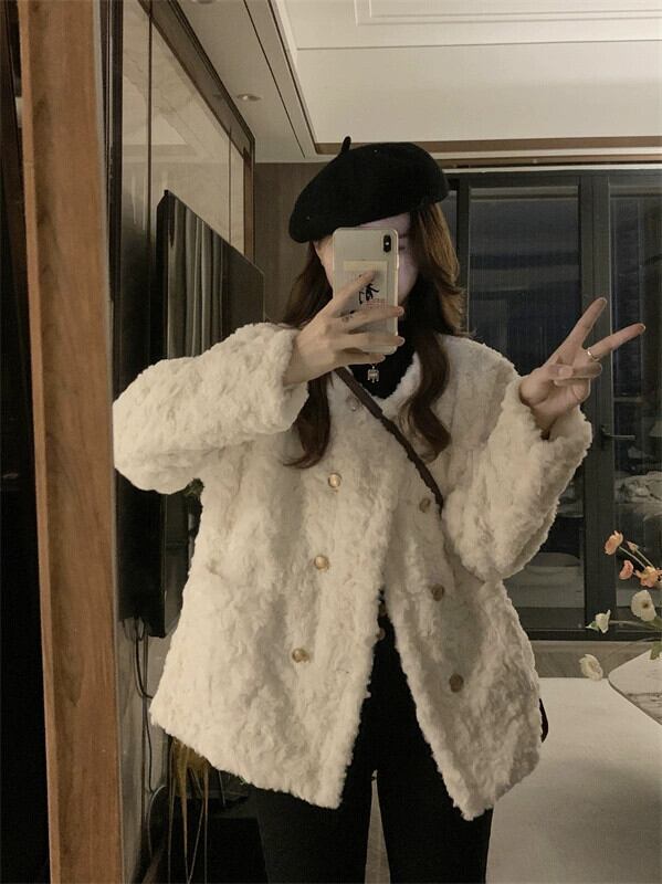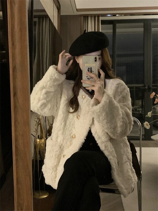 Xiaoxiangfeng ラムウールジャケット女性の秋と冬厚みのある 2024 フレンチスタイルの超見栄えの良いトップ オータム 秋物 ウィンター 冬物 8571660013692242