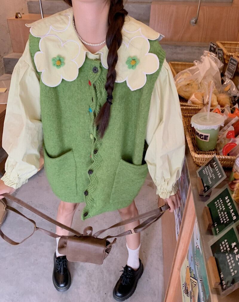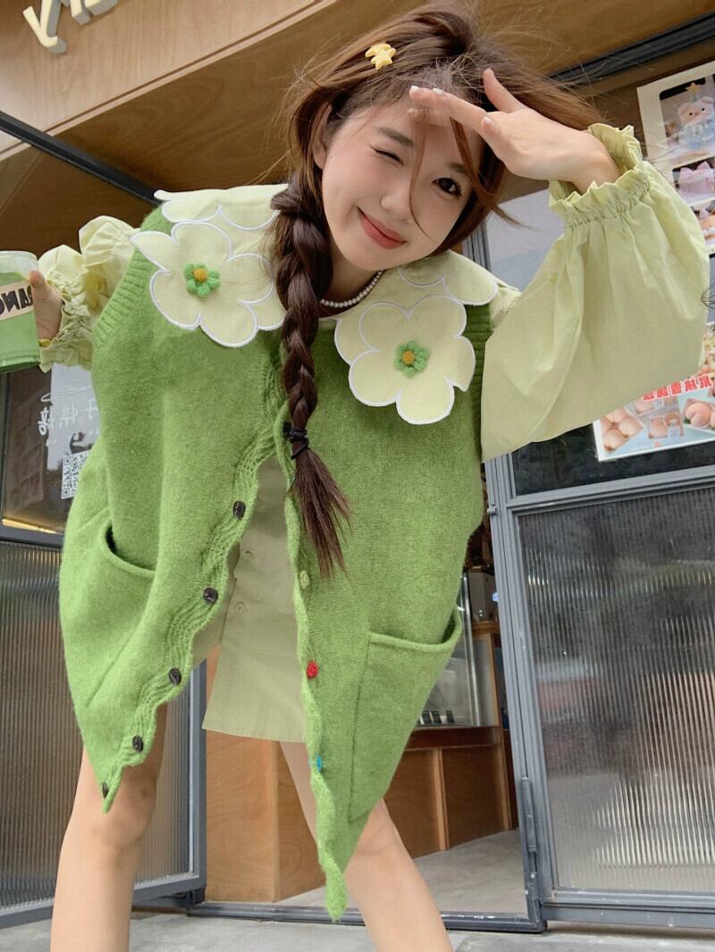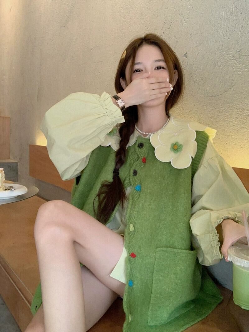 グリーンニットベスト女性の秋 2024 新しいシャツレイヤードセーターベスト甘いエストスタイルチョッキ レッド 大人ガーリー スウィート キュート カジュアル オータム 秋物 8571619700375990