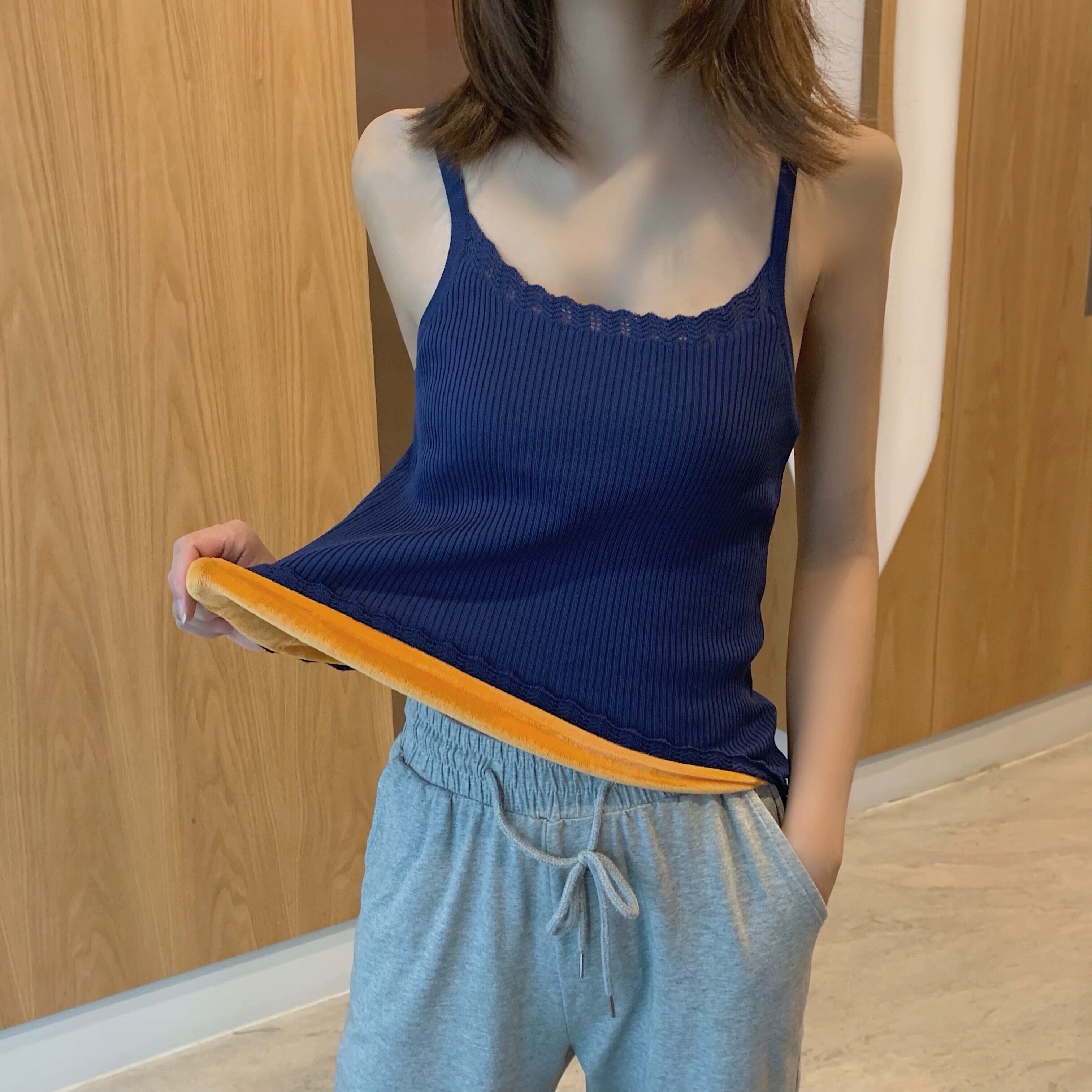 暖かいプラスフリースベスト女性 2024 秋冬人気スタイルのインナーサスペンダー下着厚みのある底ショートトップアウター オータム 秋物 ウィンター 冬物 8571640904216238