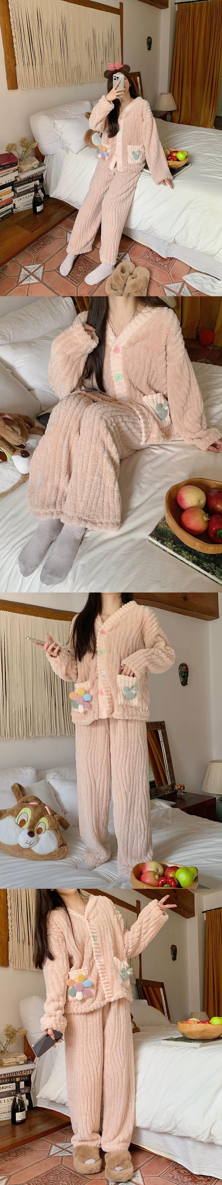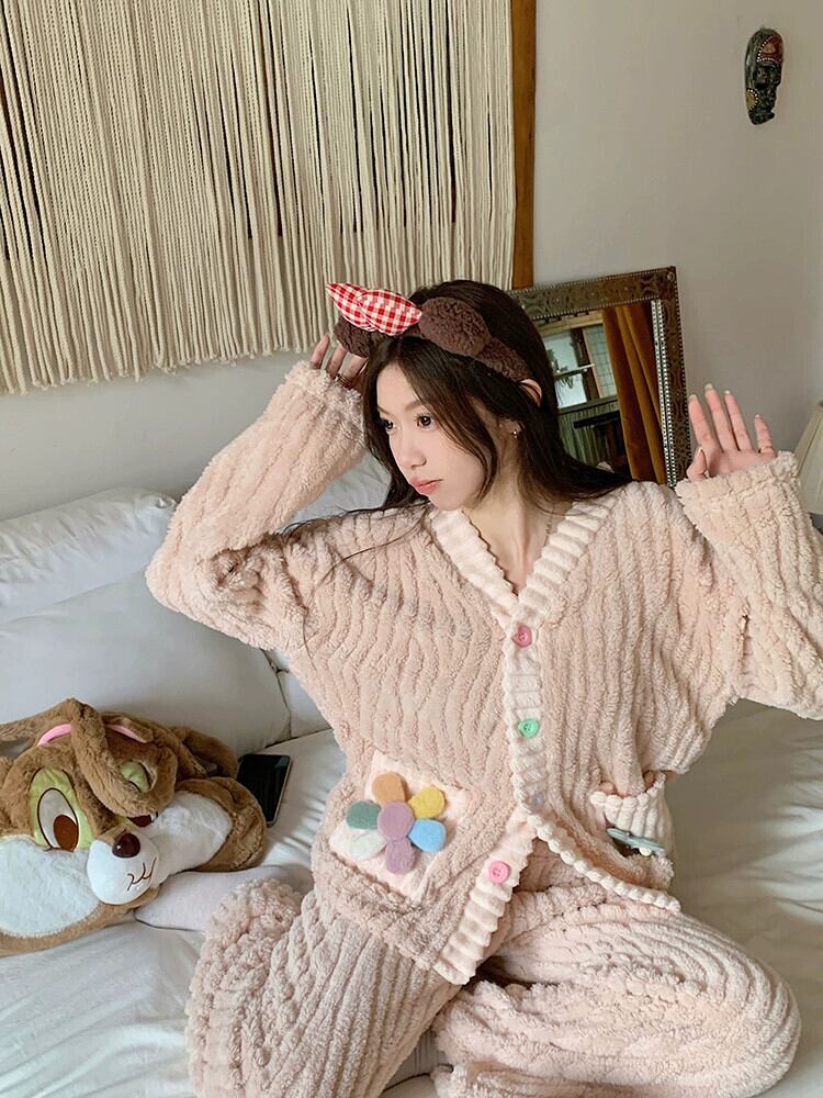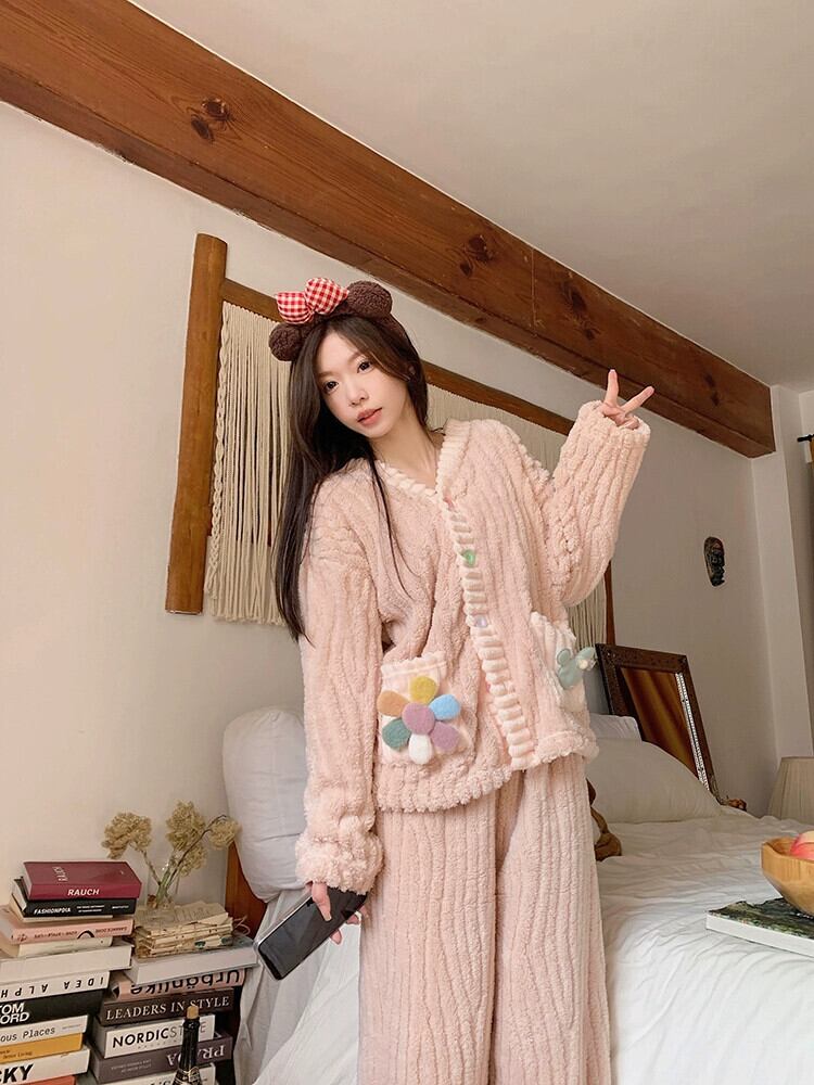 コーラルベルベット長袖パジャマ女性冬プラスベルベットと厚みのある 2024 新しいインターネット有名人甘くてウェアラブルホームウェアセット ロング 大人ガーリー スウィート キュート カジュアル ウィンター 冬物 8571610939398105