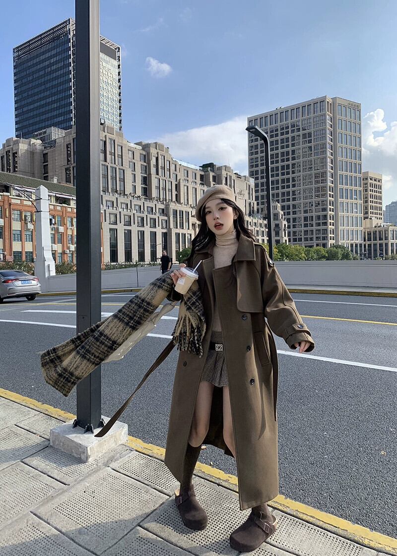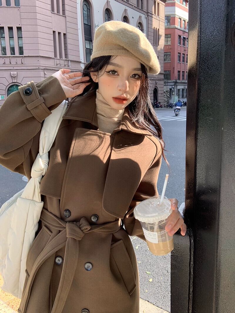 ブラウンウールコートレディース2024秋冬新作今年人気の高級膝丈ウールコート オータム 秋物 ウィンター 冬物 8571646315796681