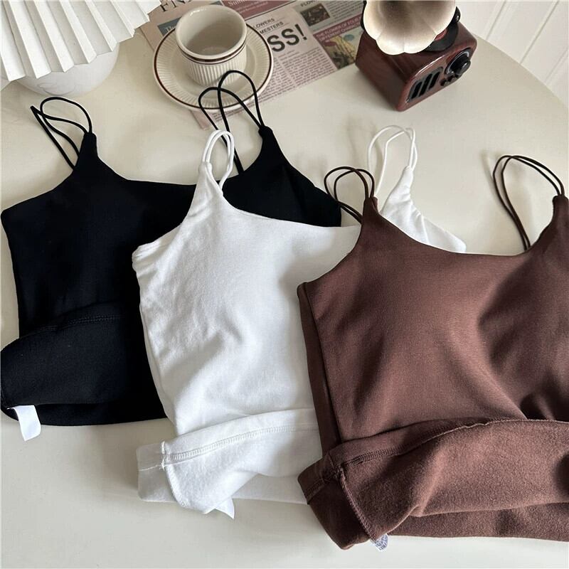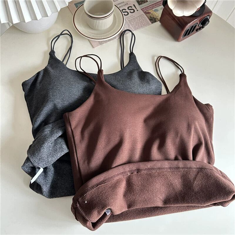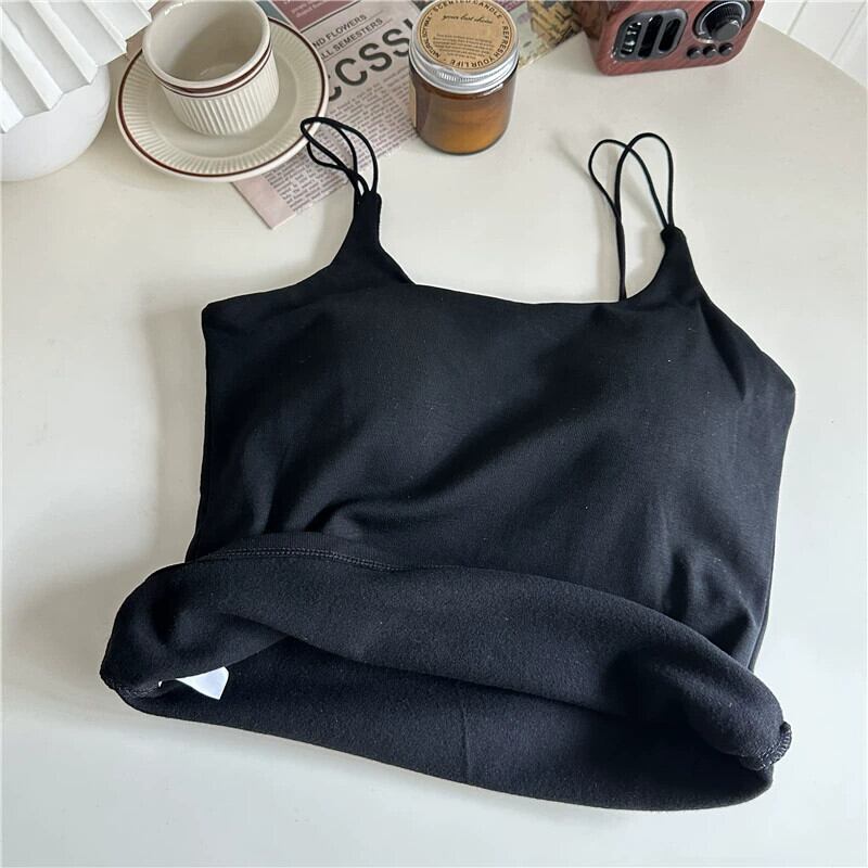 起毛キャミソールレディース秋冬暖かいインナーボトリングブラジャー付きパッド入りブラジャー美しい背中黒スリムシックトップ ブラック オータム 秋物 ウィンター 冬物 8571622058129458