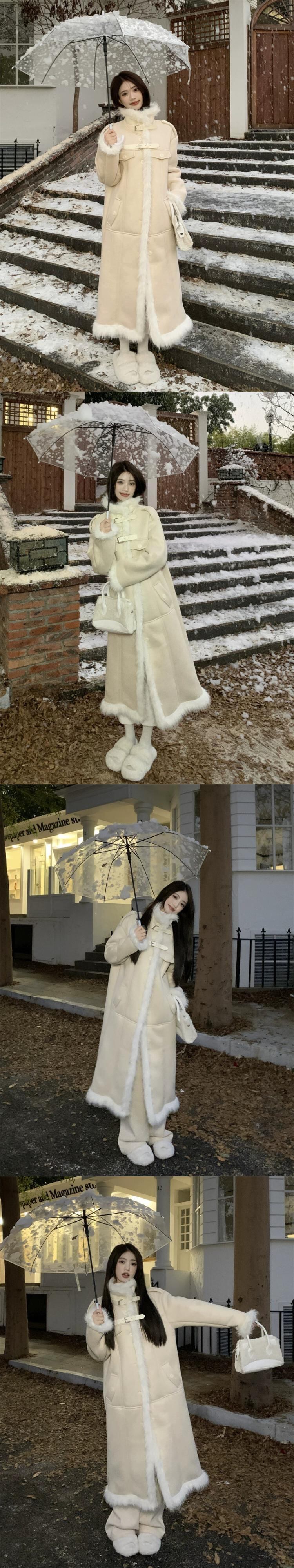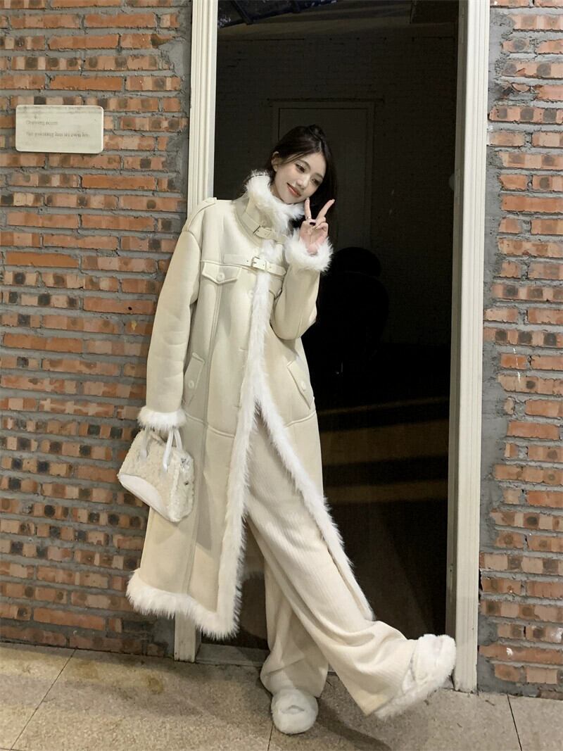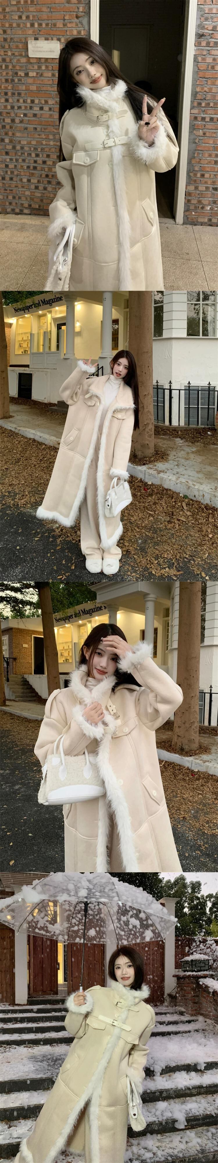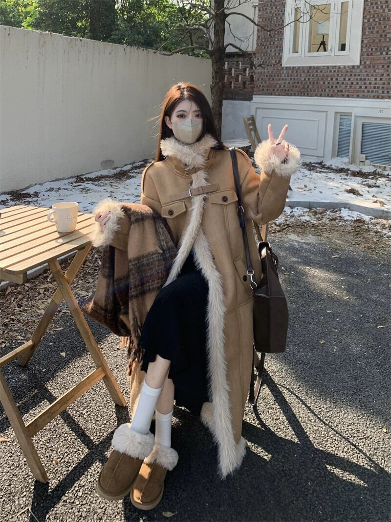 毛皮ワンピースウールコートレディース冬厚手2024新作メイラード高級ロングコート ウィンター 冬物 8571620398648754