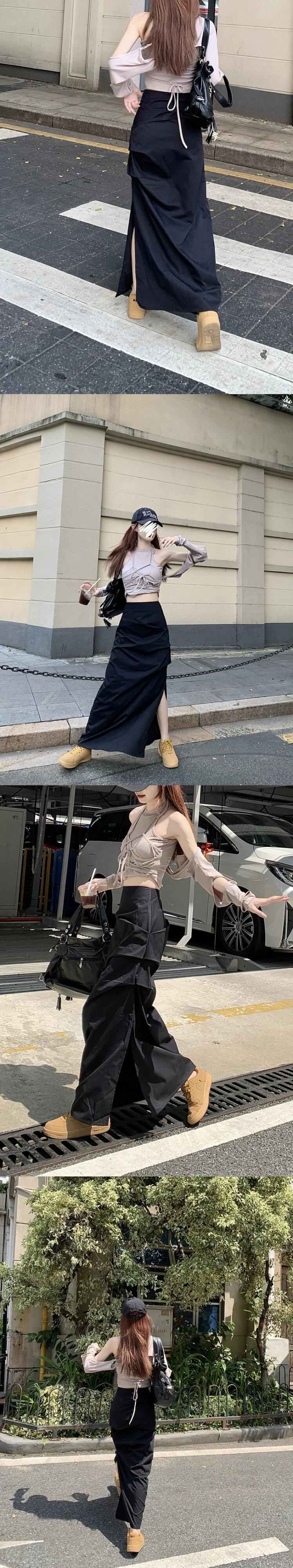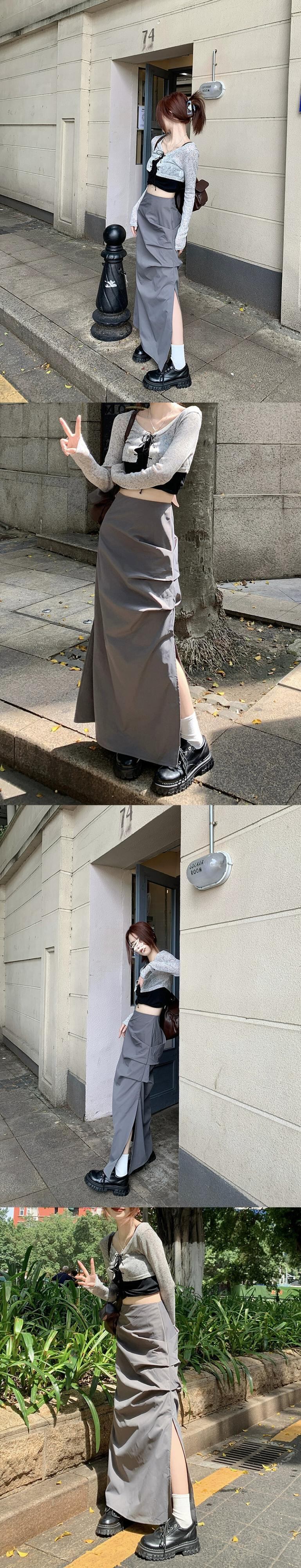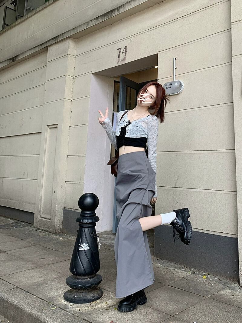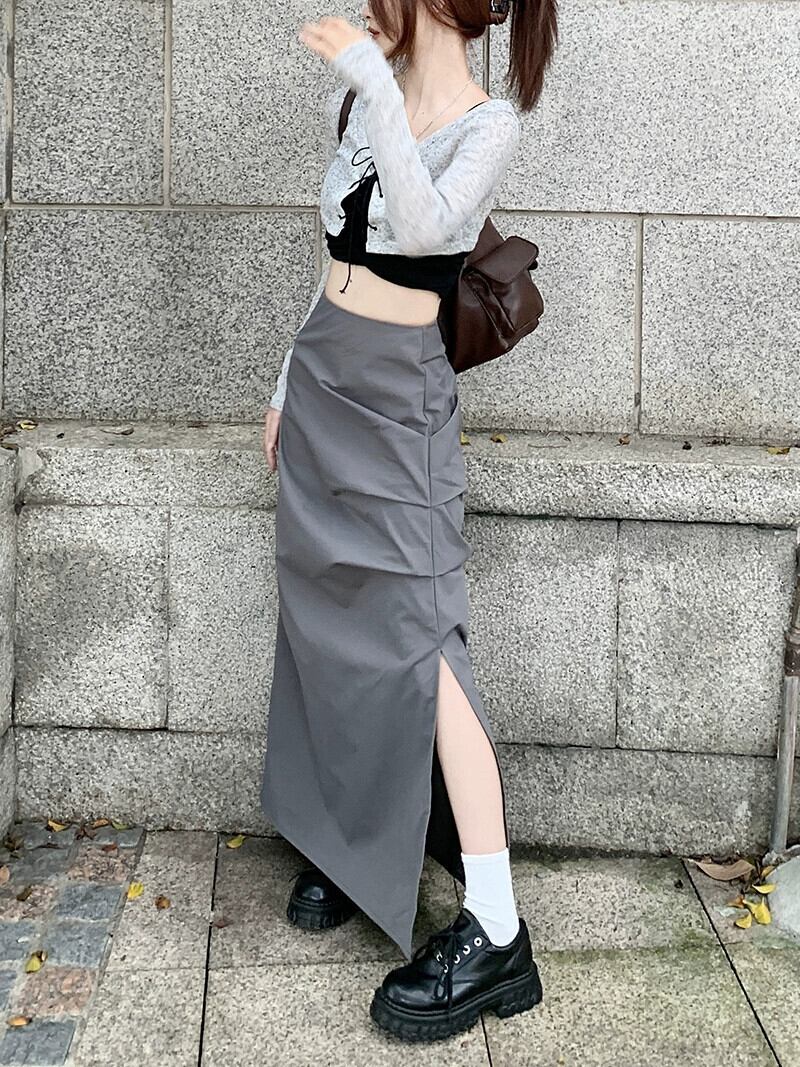 グレープリーツスカート女性春と秋ハイウエストスリット A ラインスカート 2024 新デザインヒップハグロングスカート ハイウェスト スプリング 春物 オータム 秋物 Aライン 8571629157484587