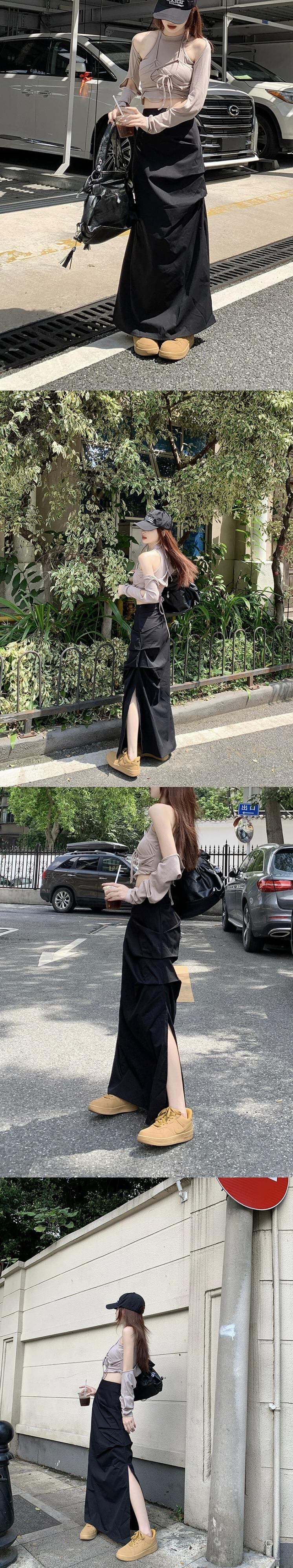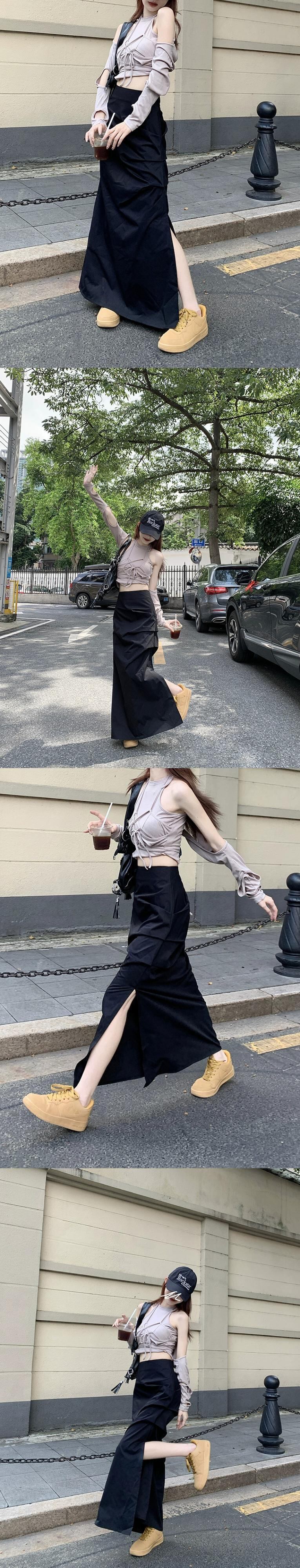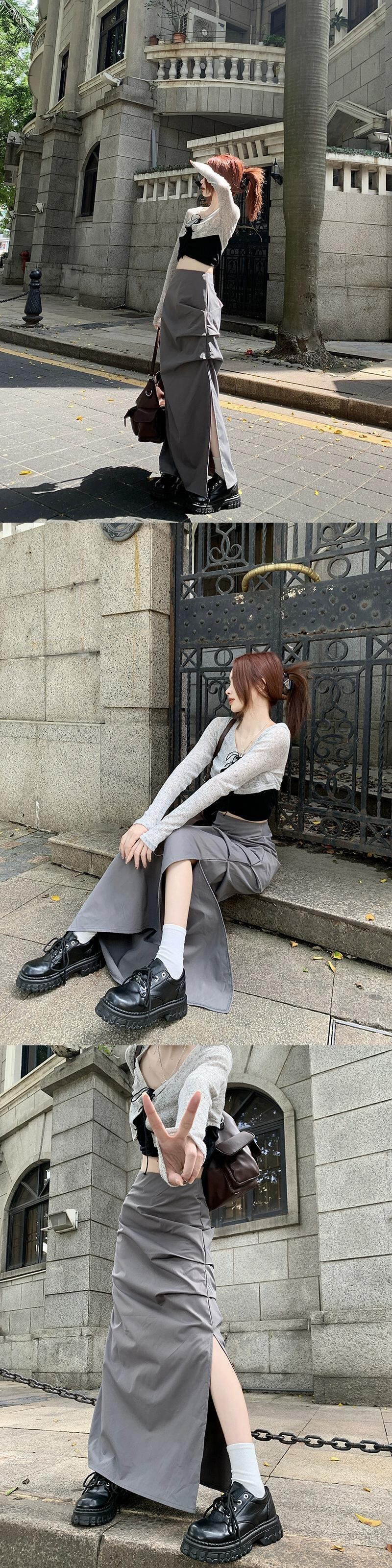グレープリーツスカート女性春と秋ハイウエストスリット A ラインスカート 2024 新デザインヒップハグロングスカート ハイウェスト スプリング 春物 オータム 秋物 Aライン 8571629157484587