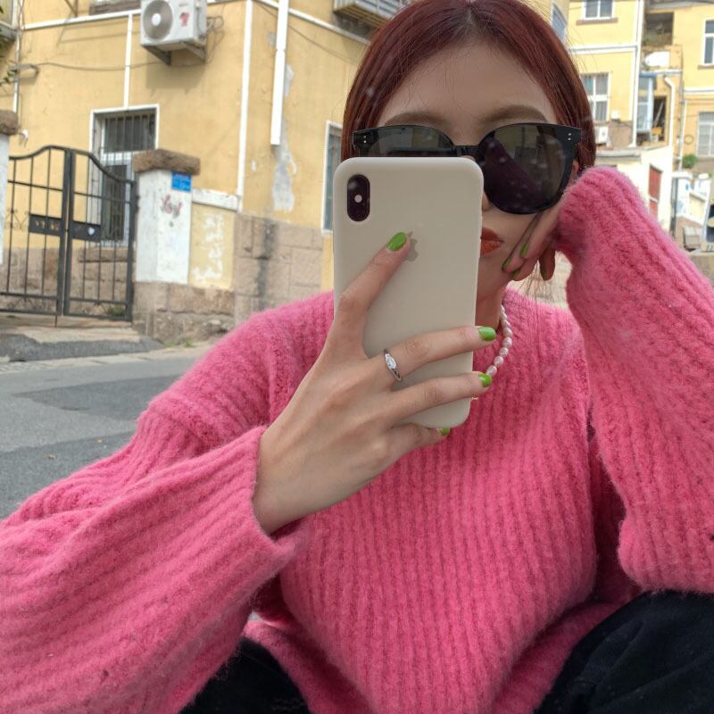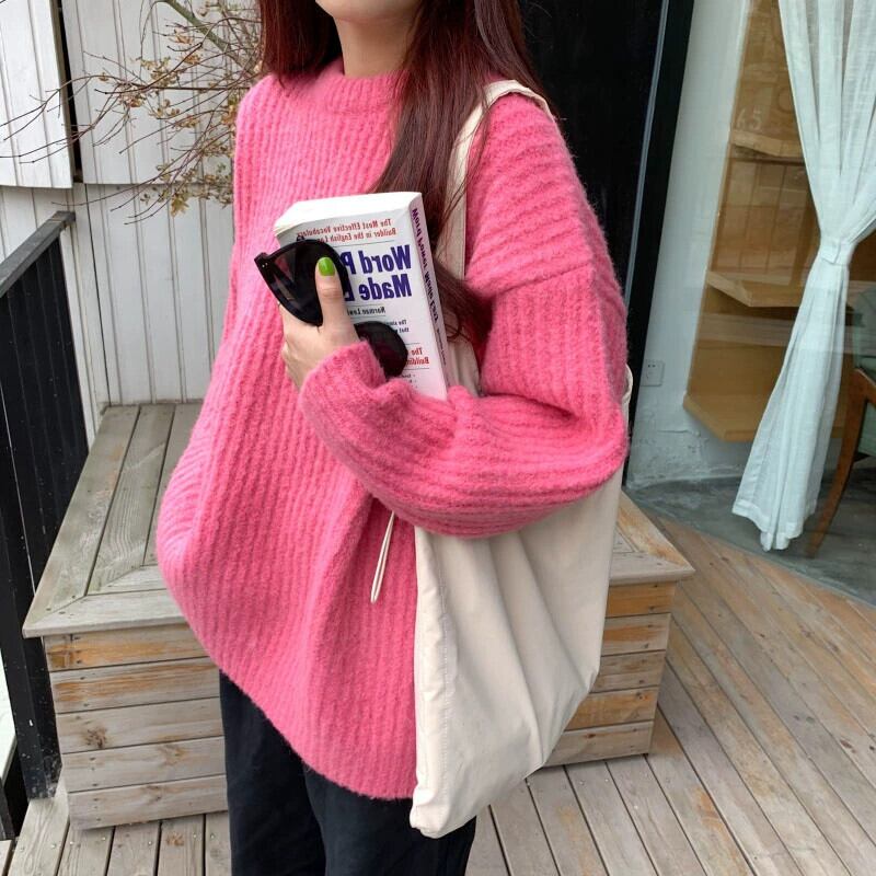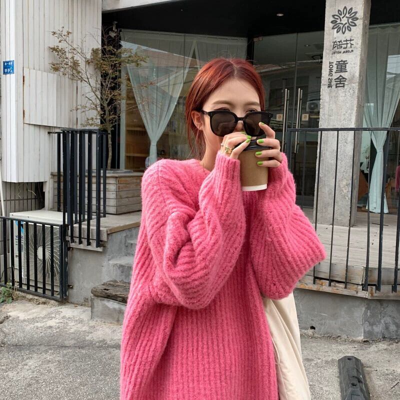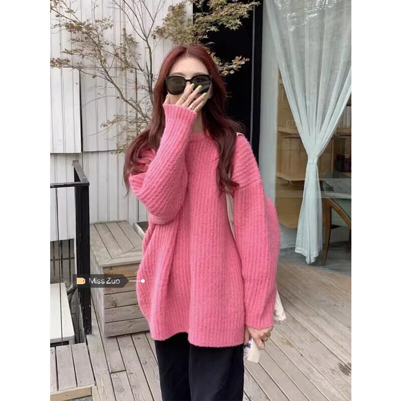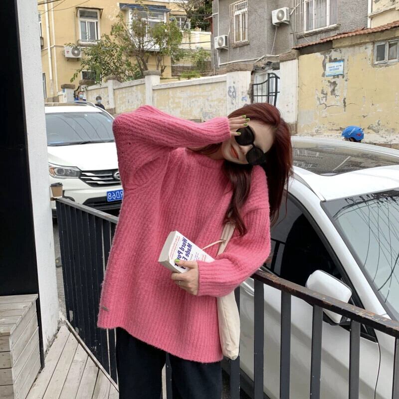 ローズレッドプルオーバーセーター女性秋と冬 2024 新しいスタイル怠惰なスタイルルーズインナー底セータートップ オータム 秋物 ウィンター 冬物 857167339914083