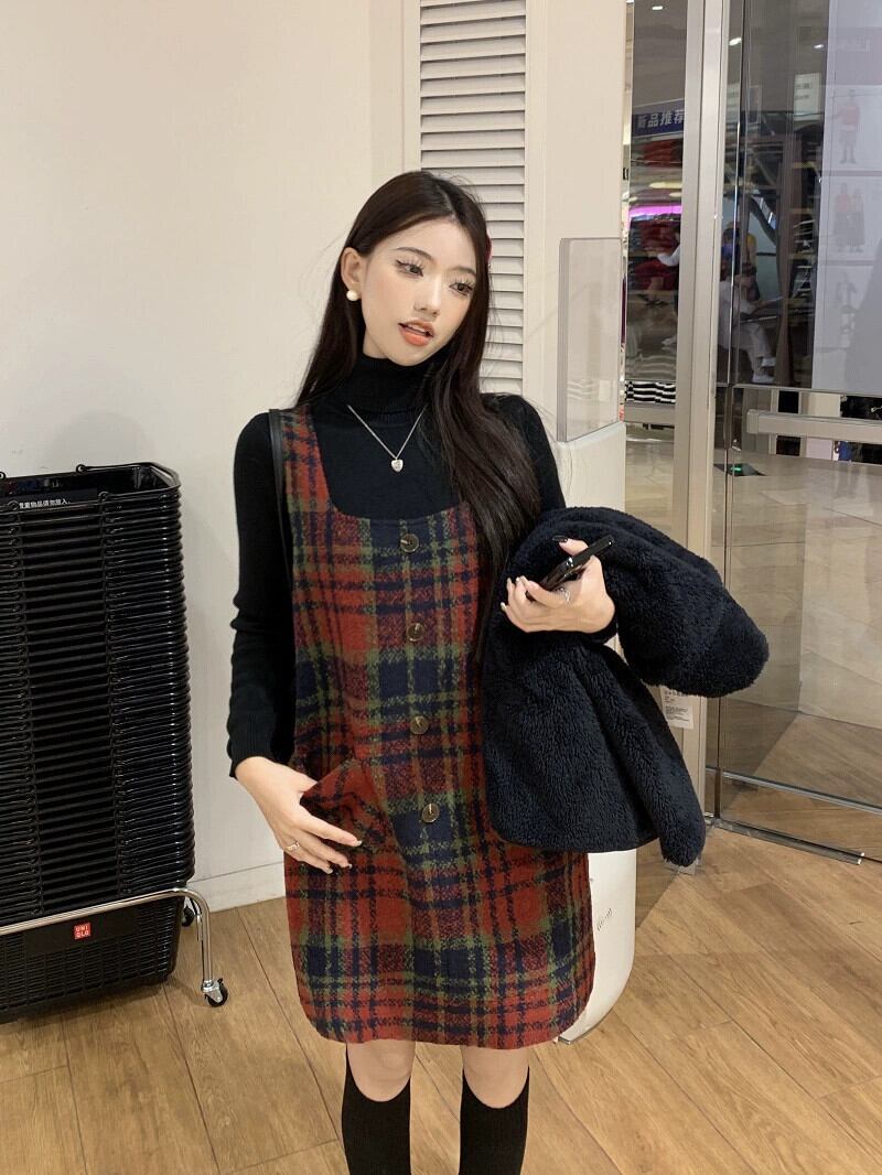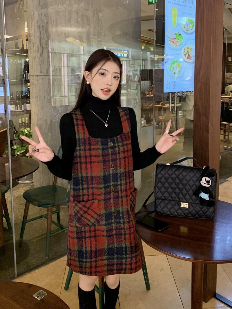 クリスマスレッドチェック柄ベストドレスレディース秋冬2024新スタイル今年人気の美しい小さなスカート オータム 秋物 ウィンター 冬物 8571637587113858